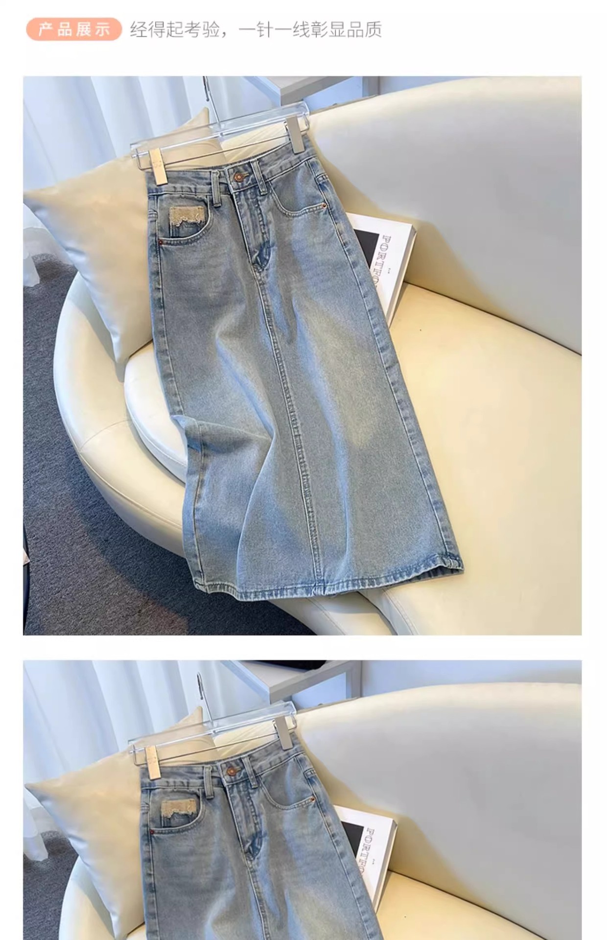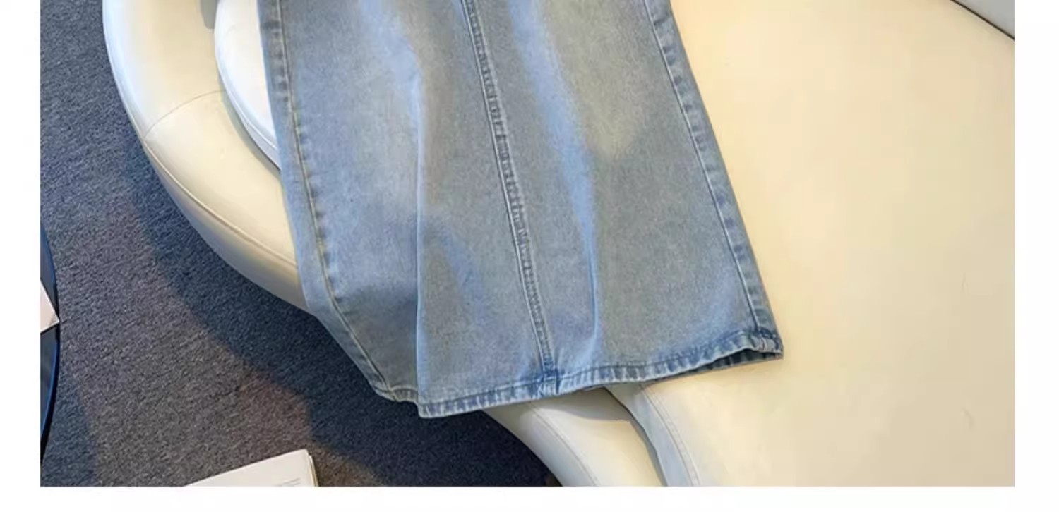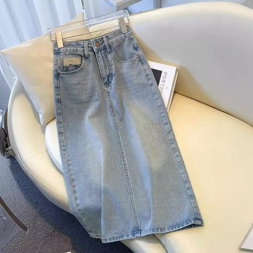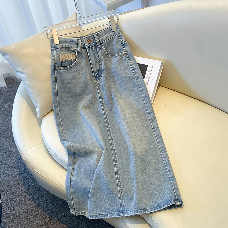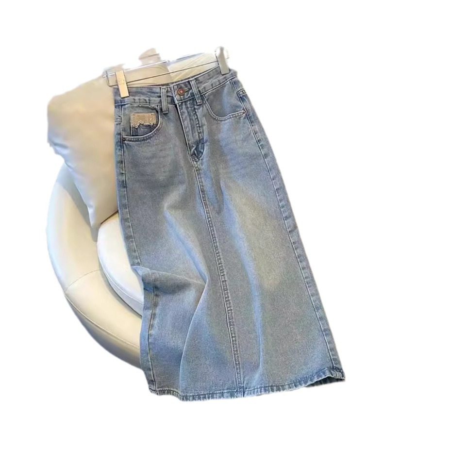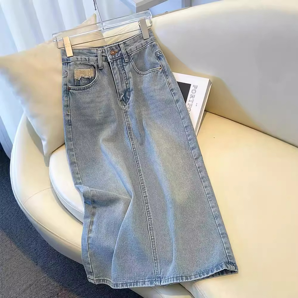 浅色牛仔半身裙女春夏款新款中长款高腰显瘦开叉a字包臀裙子