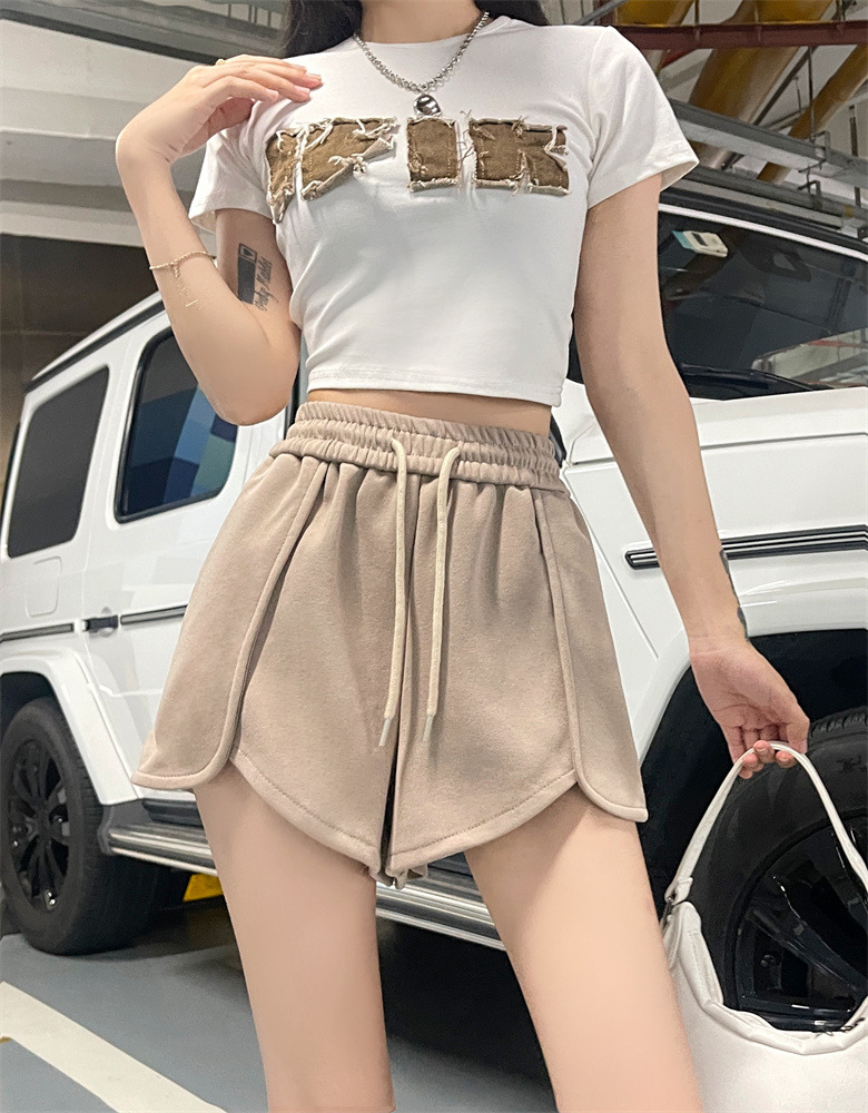 夏季高腰显瘦阔腿短裤女辣妹别致薄款热裤宽松休闲运动风三分裤子