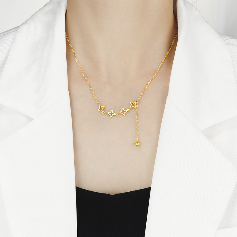 爆款镂空星星项链18K金不掉色小众设计不锈钢链条简约轻奢锁骨链