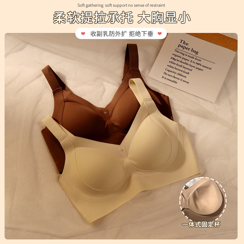 大胸显小内衣薄款收副乳无痕无钢圈文胸女士调整型提拉固定杯胸罩