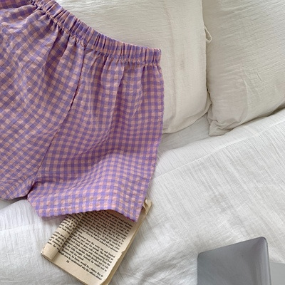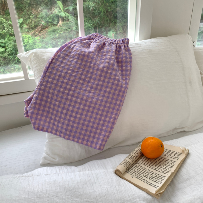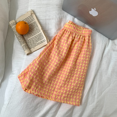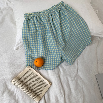 多巴胺格子短裤女夏季薄款懒人居家舒适休闲直筒阔腿裤外穿睡裤潮