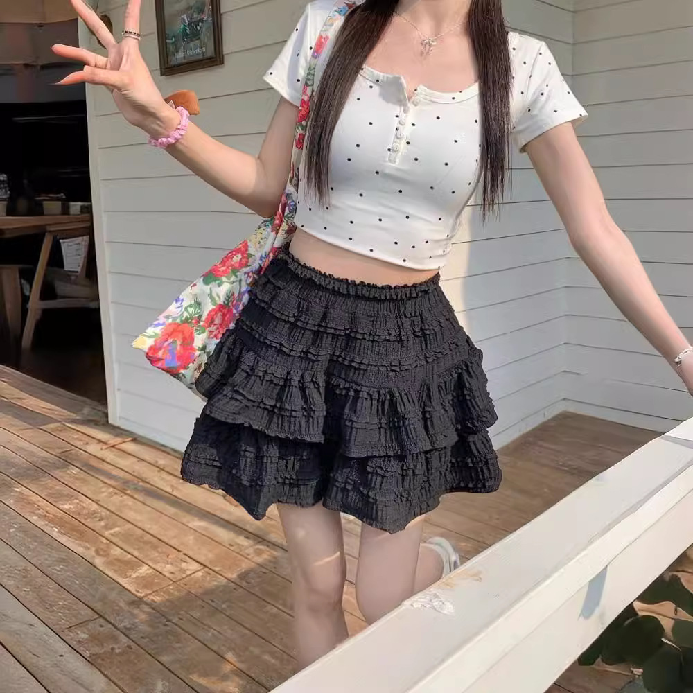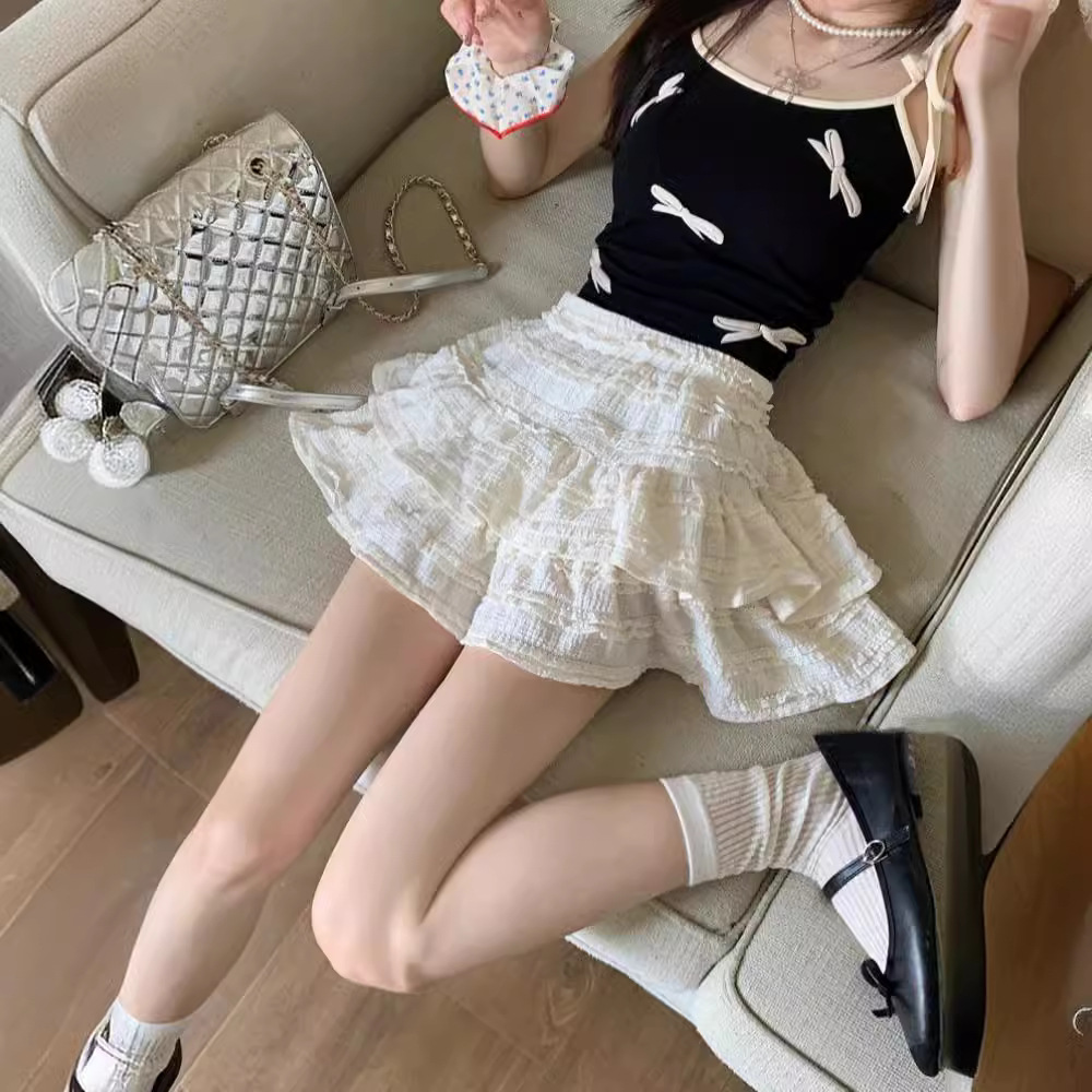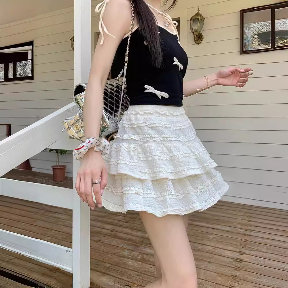 小个子夏季双层花边蛋糕裙新款A字芭蕾蓬蓬裙防走光高腰短裙