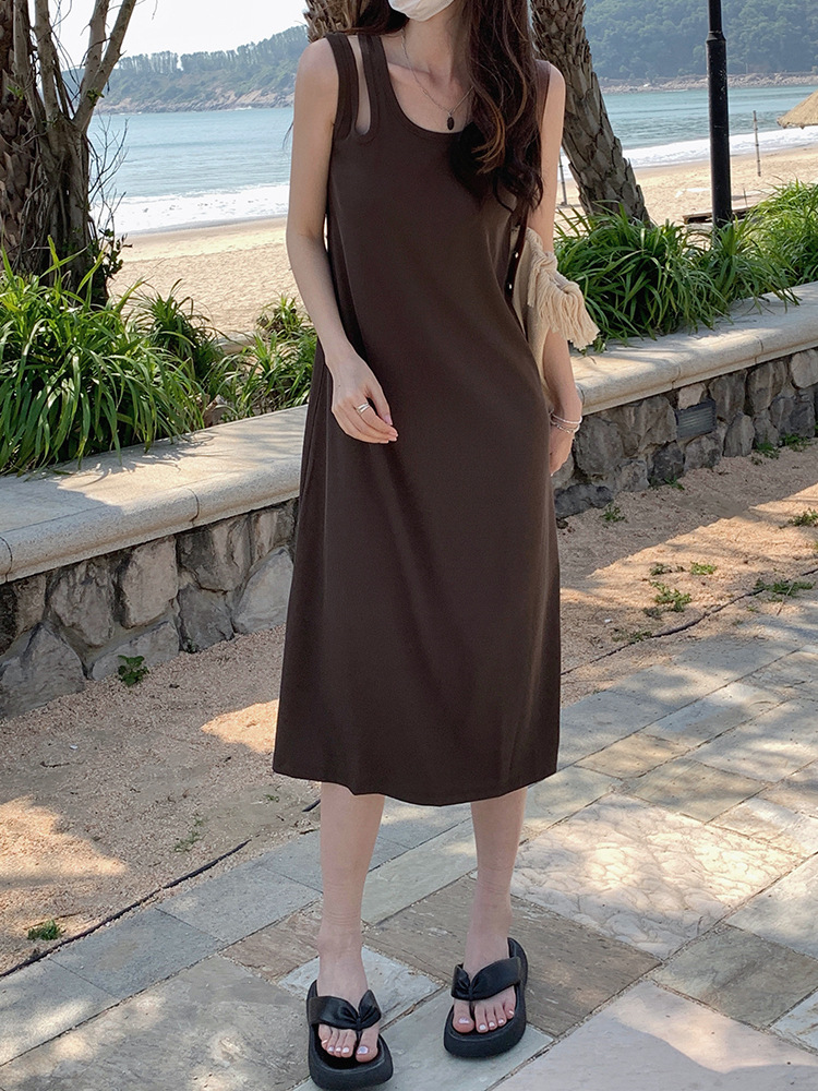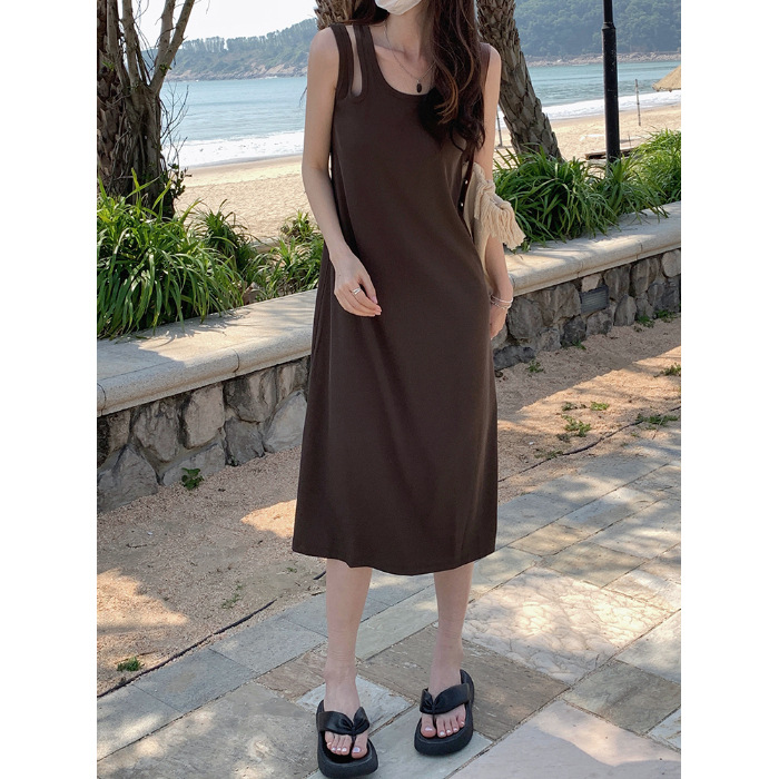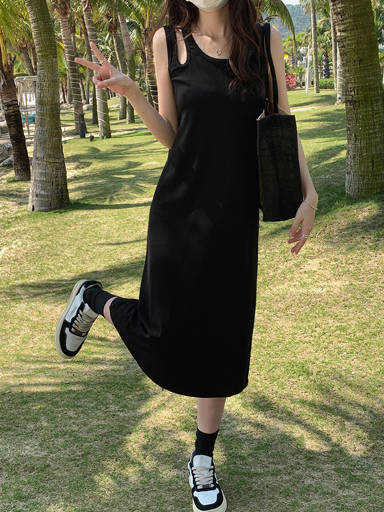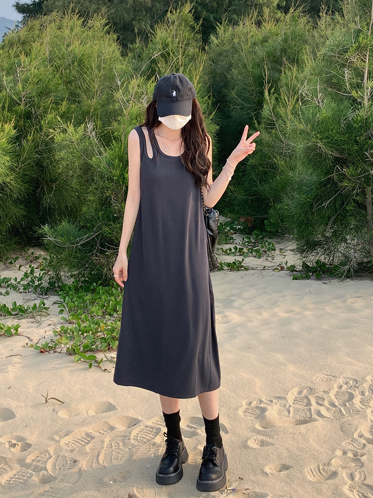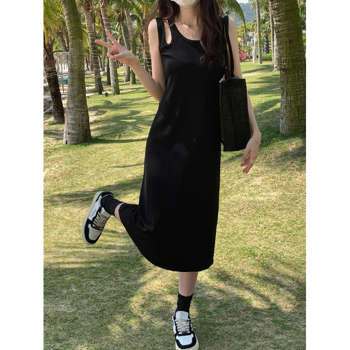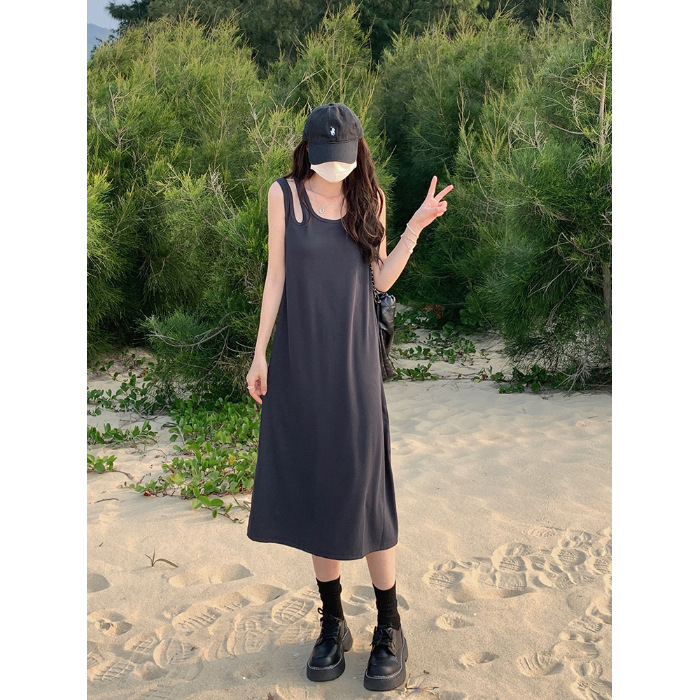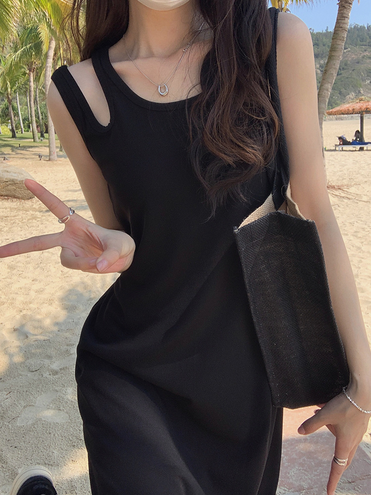 设计感露肩无袖背心连衣裙女夏季新款胖MM显瘦内搭打底吊带裙