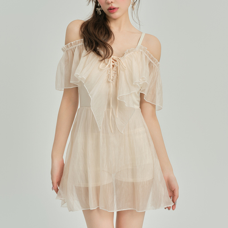 仙气游泳衣女连体平角保守显瘦遮肚微胖大码裙式新款时尚泳装