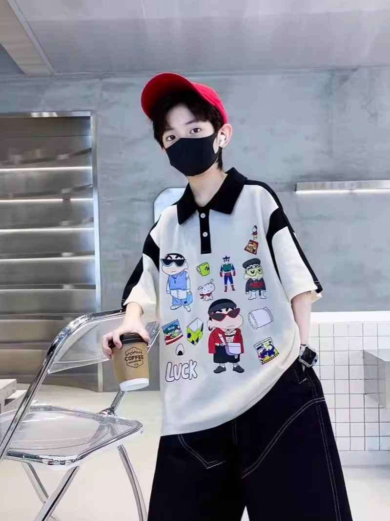 男童短袖Polo衫新款童装韩范夏季印花卡通中大童上衣半袖跨境
