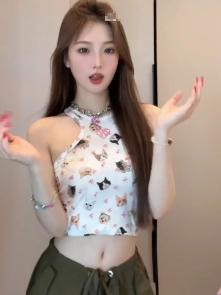 印花性感工字吊带背心露肩女夏修身短款内搭上衣外穿