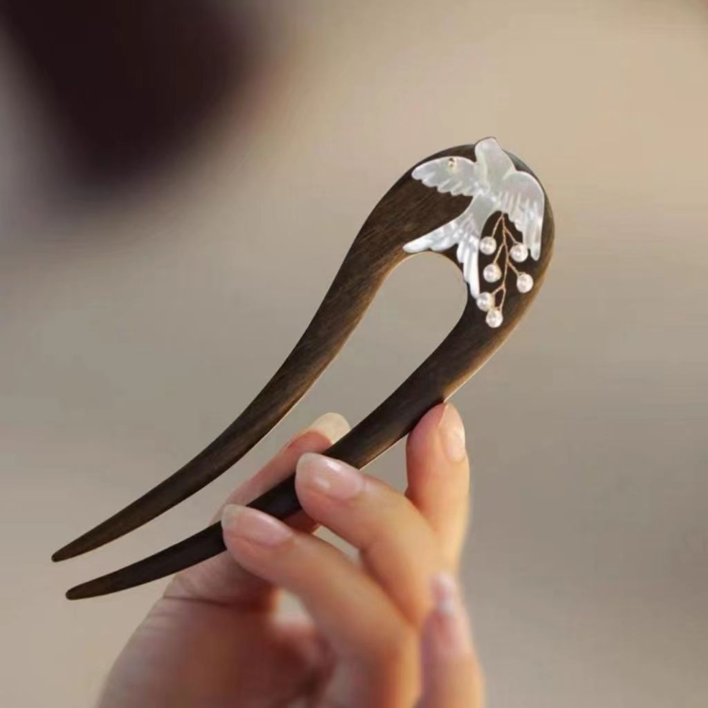 归燕 素雅檀木质发簪子简约u型发钗盘发配饰高级感日常双股新中式