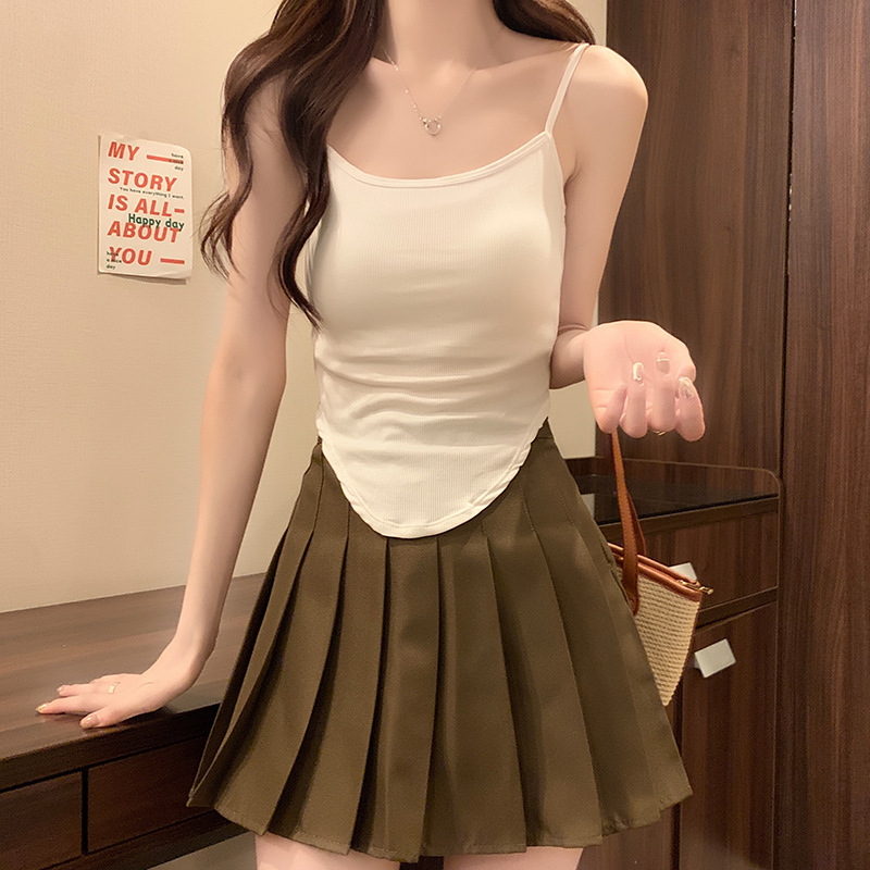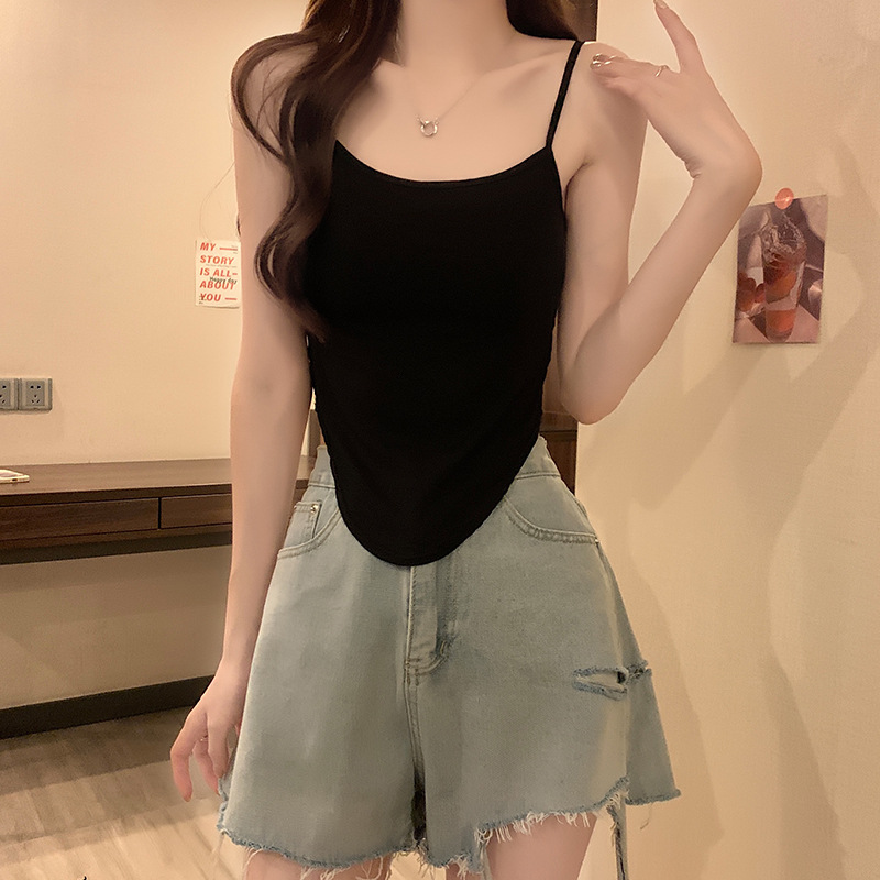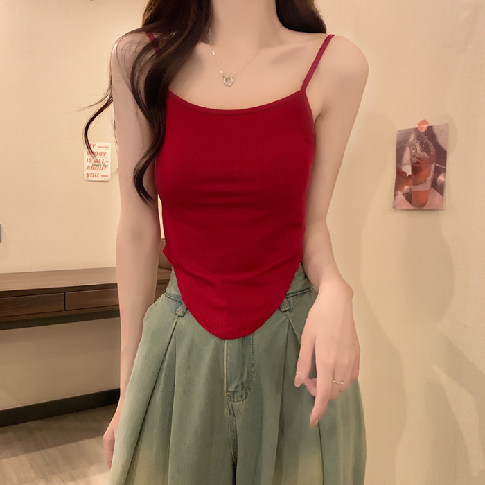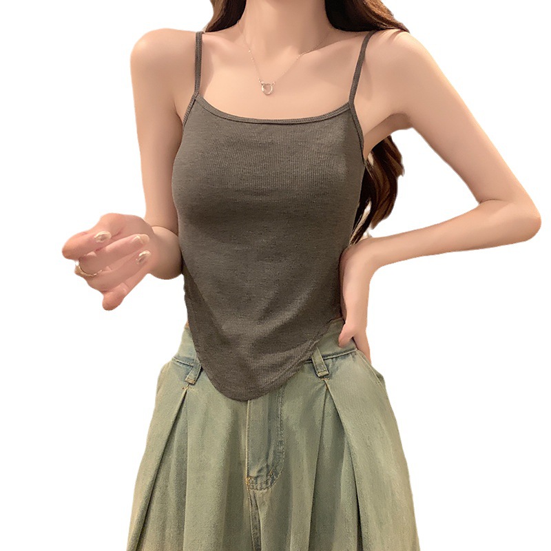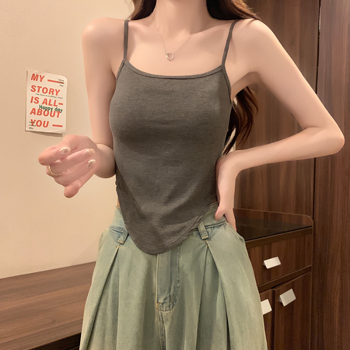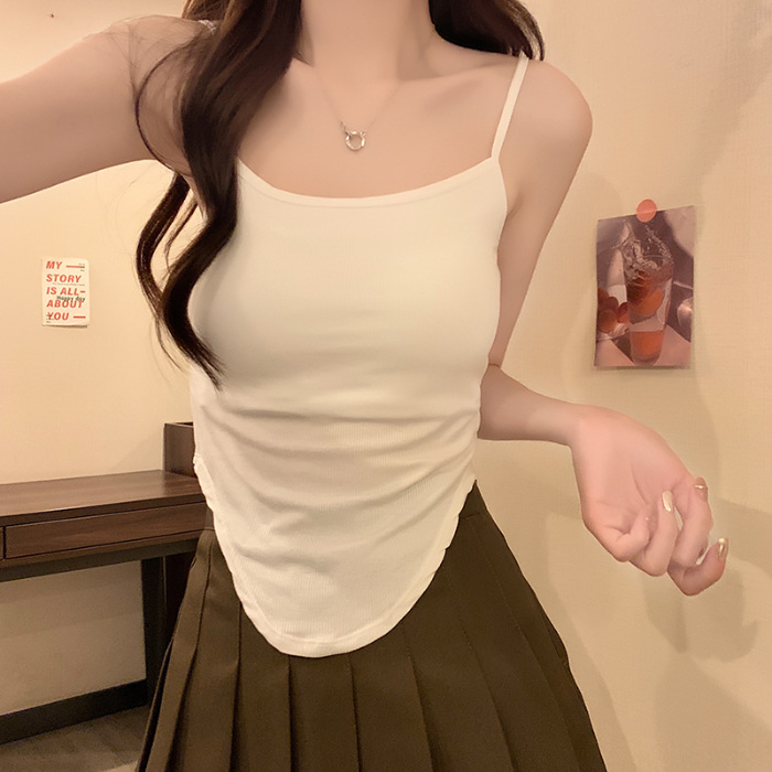 夏季甜辣妹纯欲风小吊带女不规则内搭无袖打底带胸垫外穿性感背心