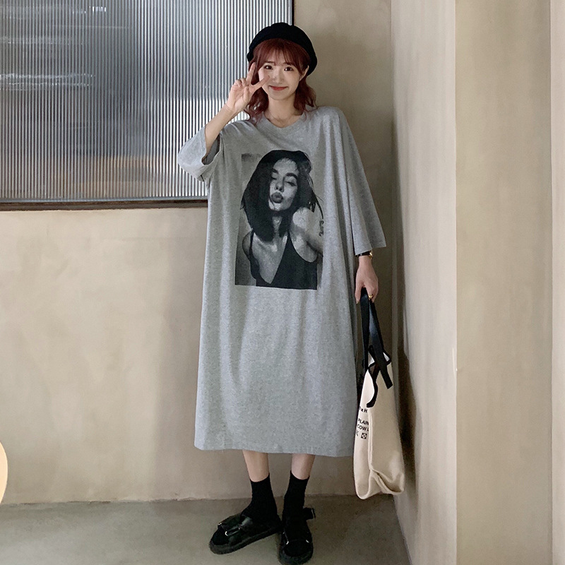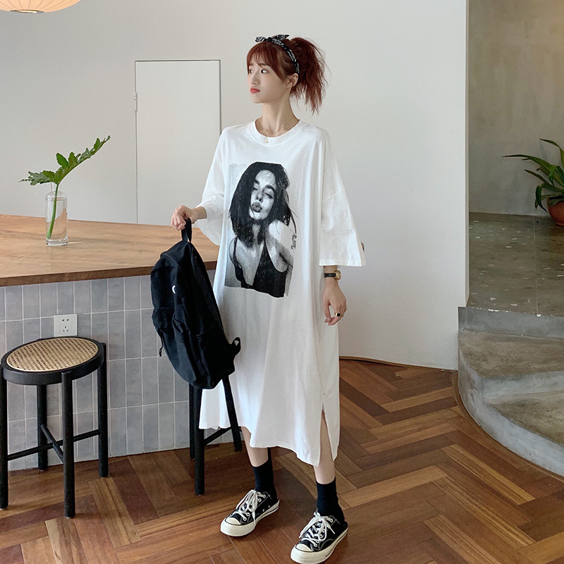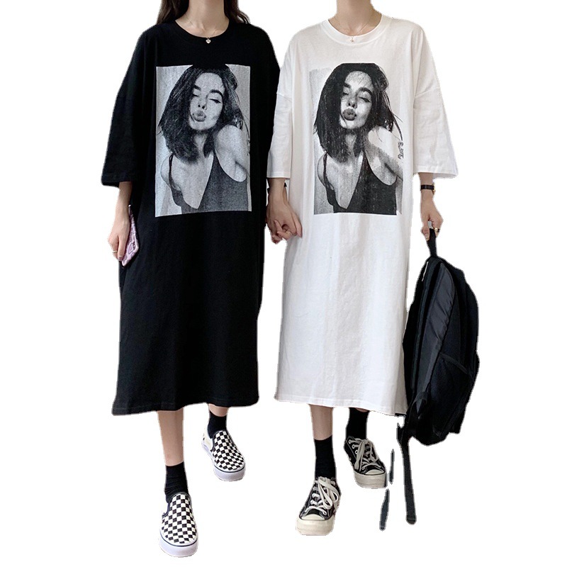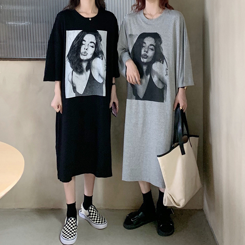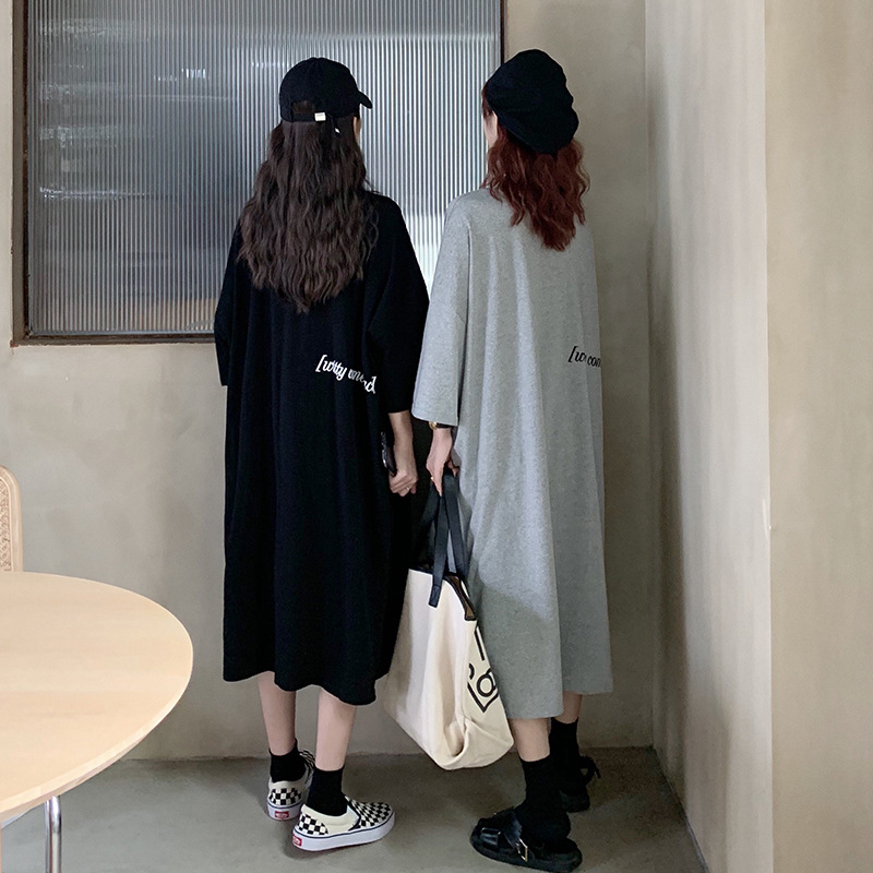 韩版新款宽松慵懒风长款T恤胖MM大码oversize孕妇短袖长裙夏