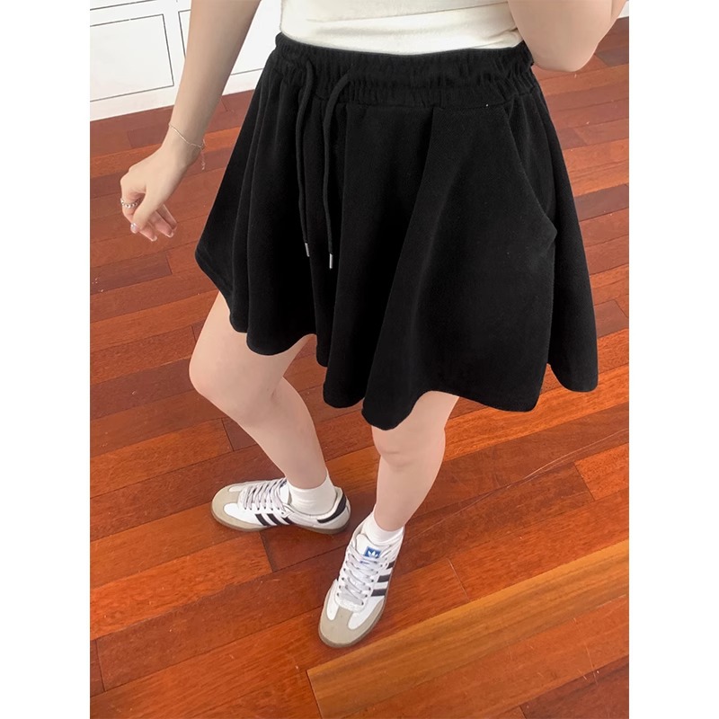 芭蕾风黑色松紧腰休闲运动短裤女夏季小个子宽松遮肉显瘦a字裤裙