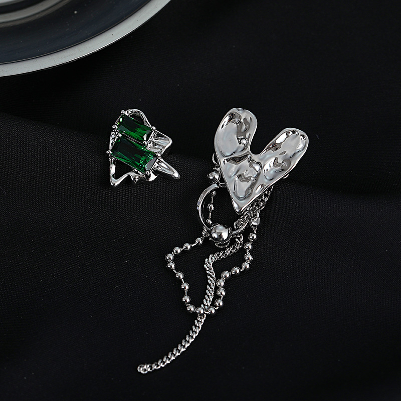 爱心耳环女ins冷淡风甜酷时尚链条耳饰不对称韩国小众设计感耳钉