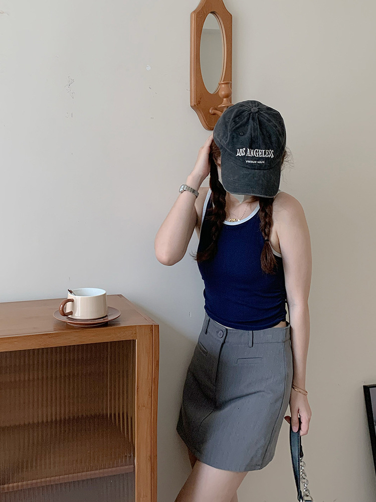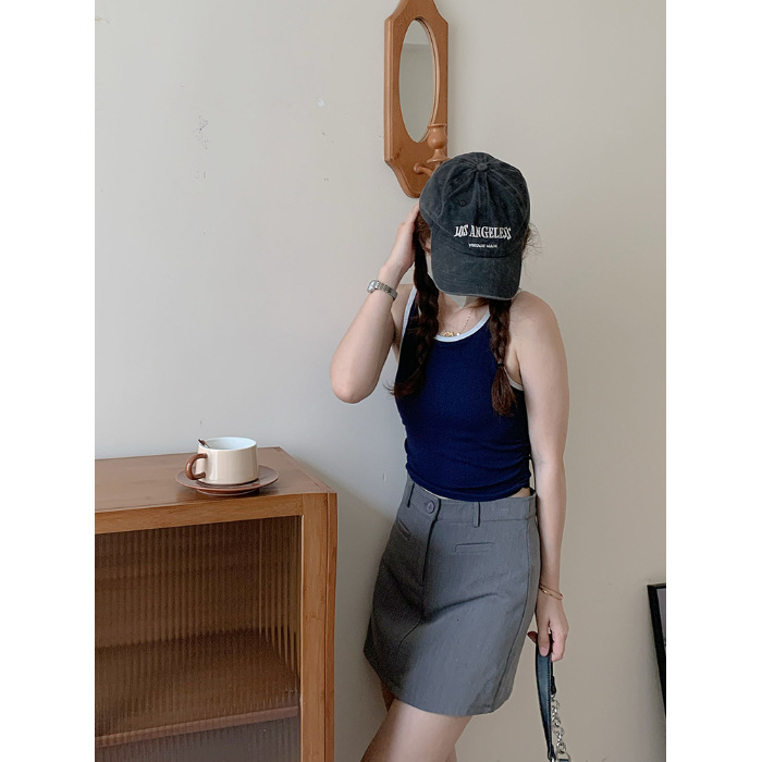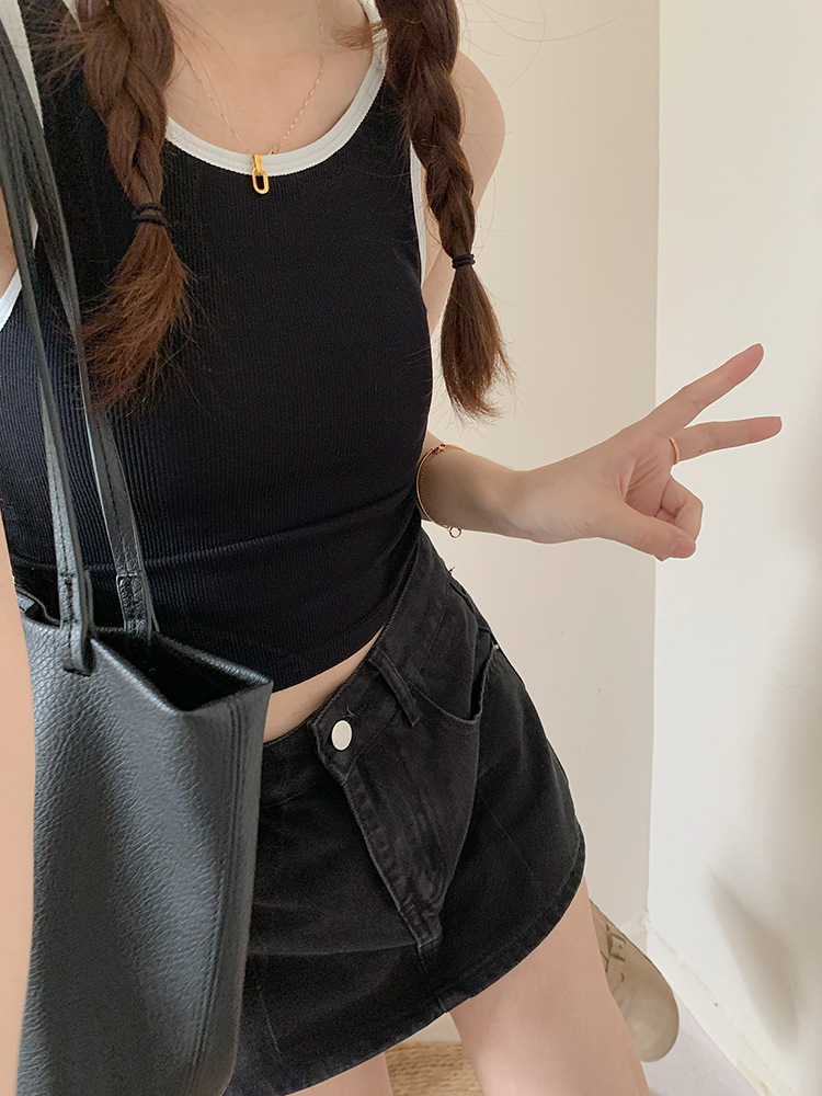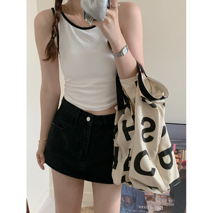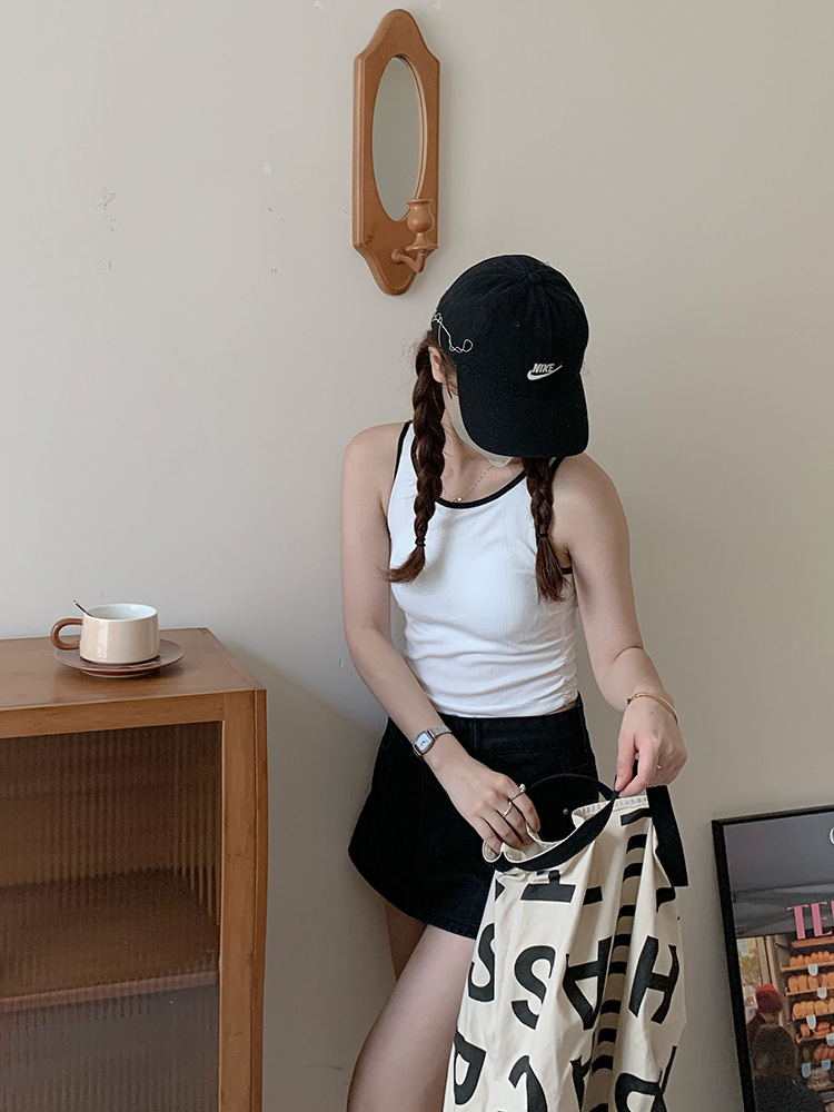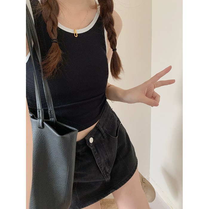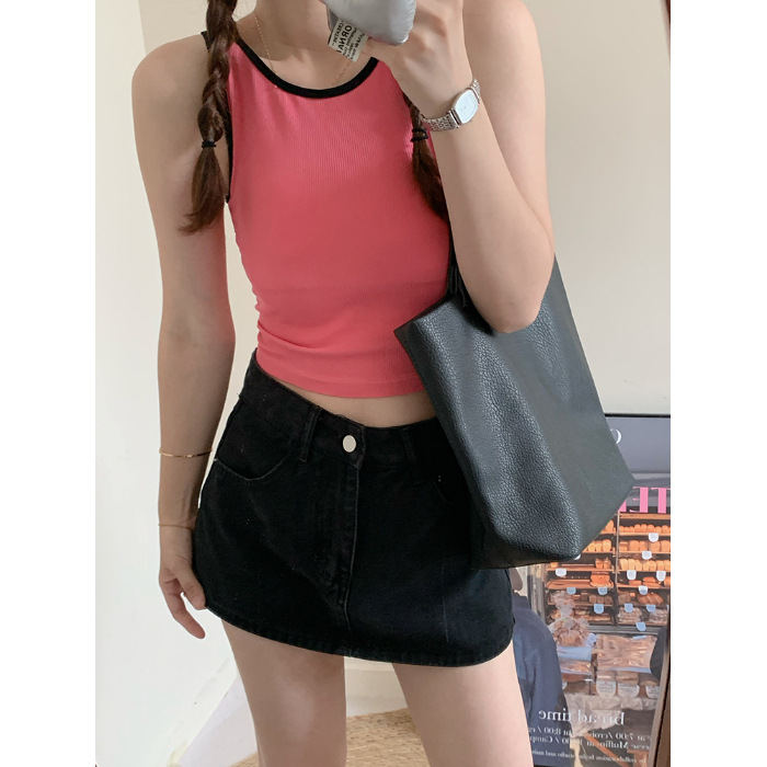 韩系风撞色圆领吊带背心夏季新款小个子辣妹修身显瘦短款无袖上衣