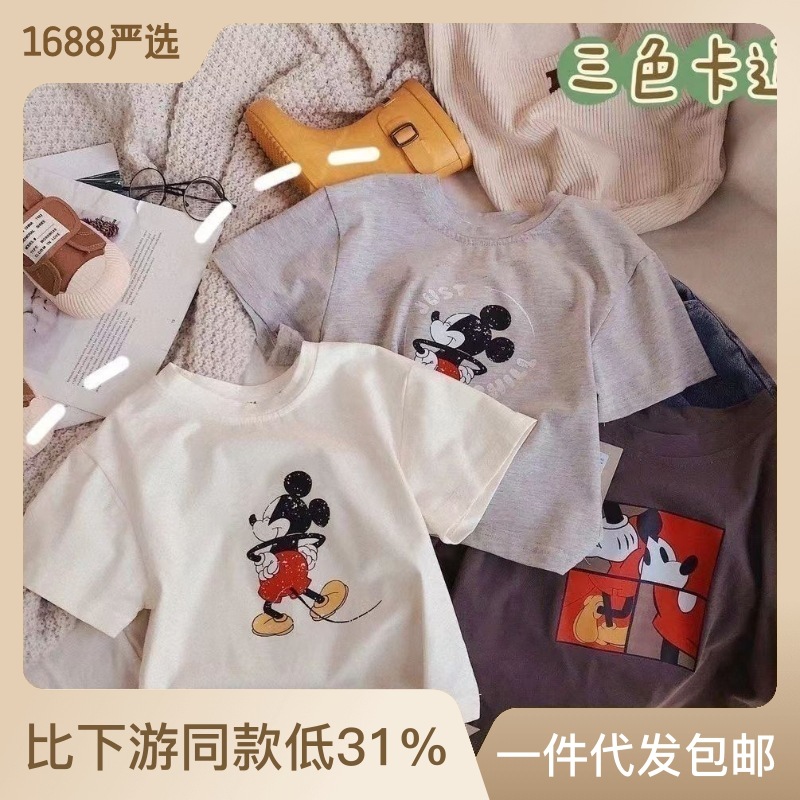 纯棉儿童男女童短袖t恤夏季新款卡通印花透气吸汗半袖圆领上衣潮
