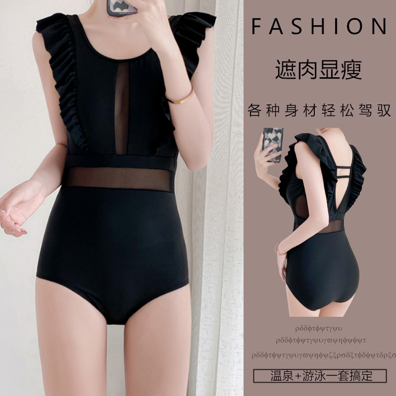 连体泳衣女新款连体遮肚高腰显瘦小胸聚拢时尚沙滩泡温泉泳装