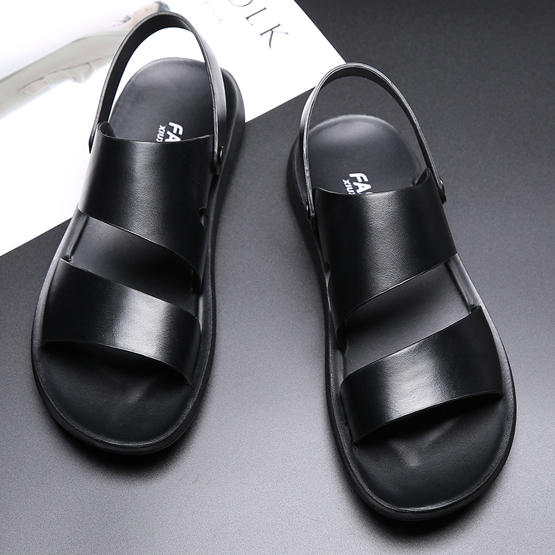 夏款 厚底休闲凉拖鞋二层牛皮沙滩鞋两用凉鞋