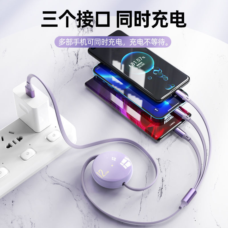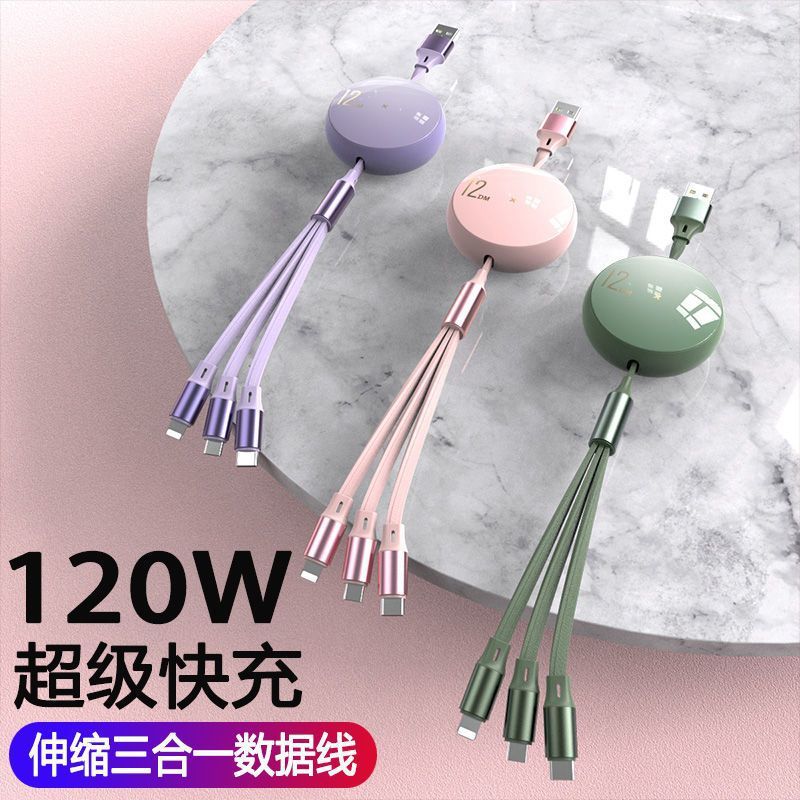 120超级快充数据线三合一适用于苹果华为小米一拖三车载充电线