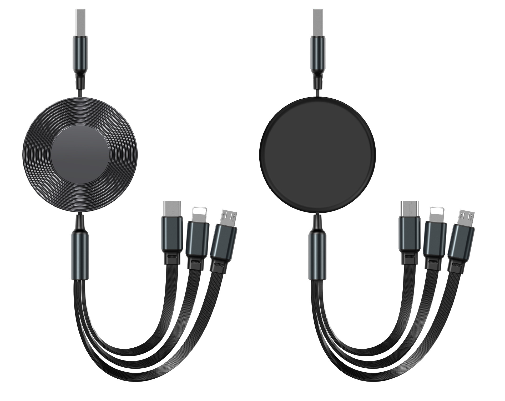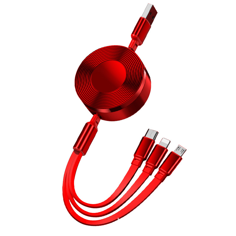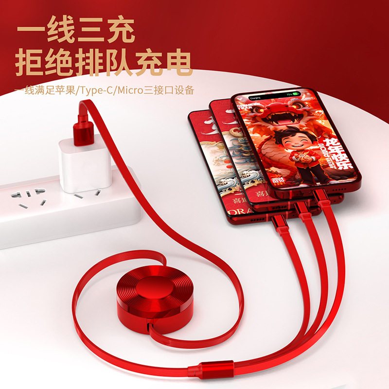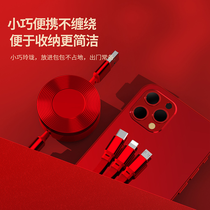 伸缩一拖三快充数据线适用苹果安卓手机充电线三合一