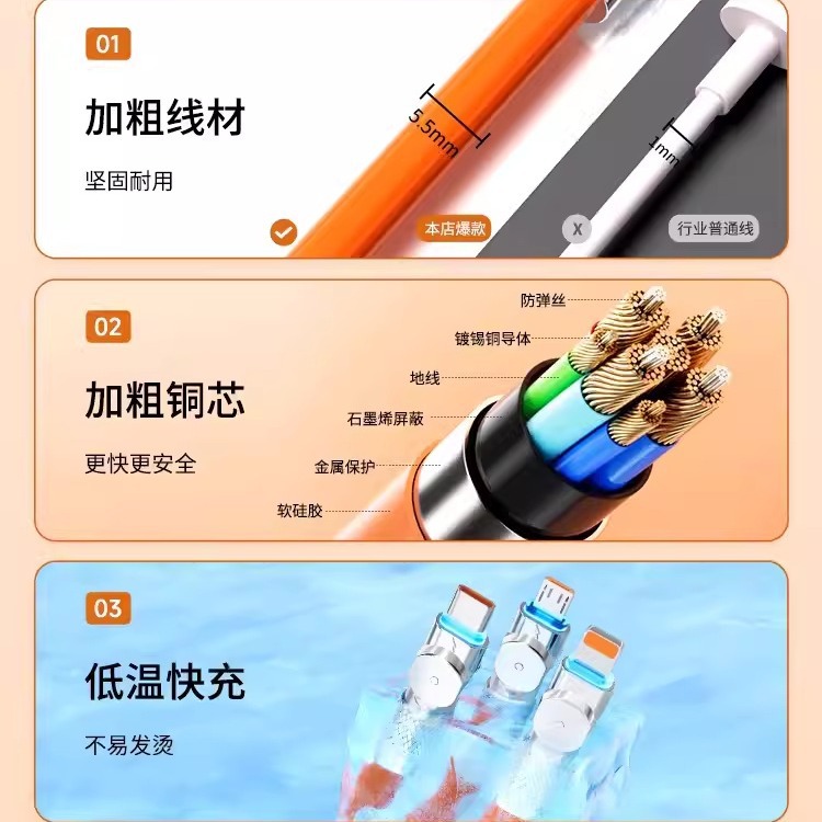 数据线三合一充电线一拖三120超级快充安卓手机平板