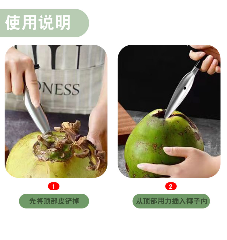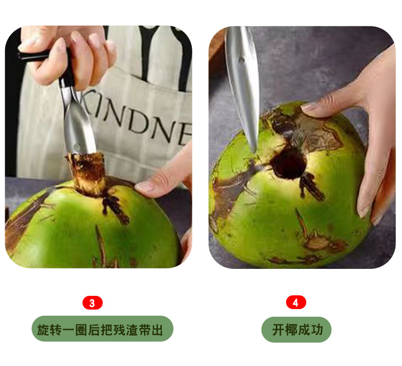 开椰子神器不锈钢取肉器椰青开壳器开孔器开口器开椰器椰子刀工具