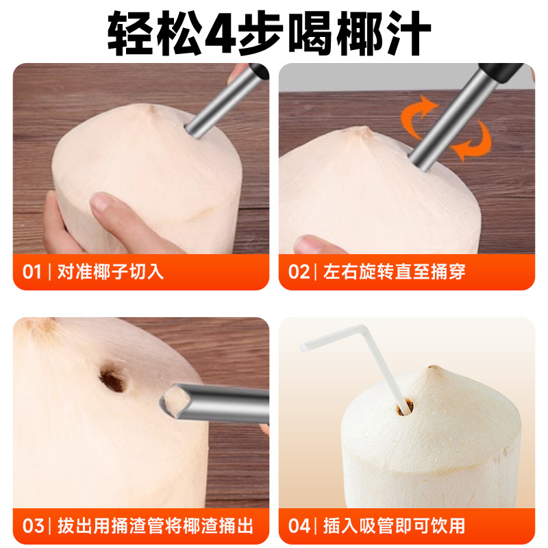 不锈钢开椰器椰青开壳神器椰子开口钻孔工具椰子开口器打孔开盖器