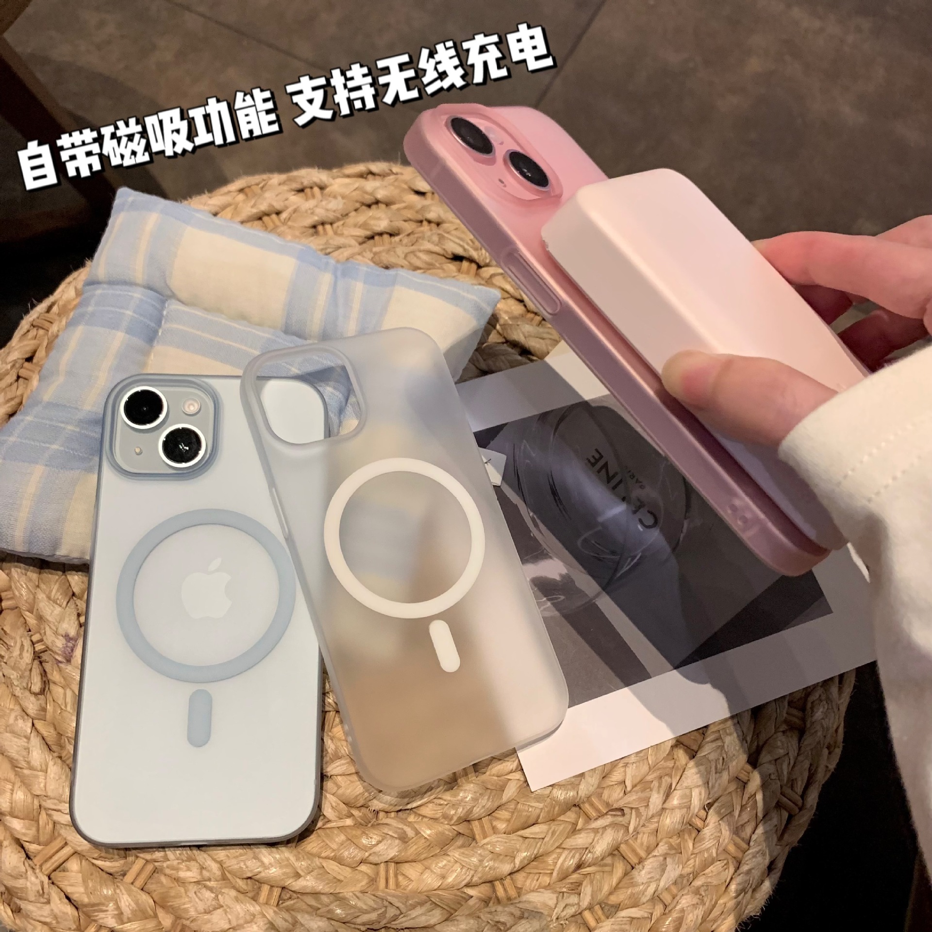 PC肤感磁吸适用苹果16promax手机壳超薄冰雾iPhone15防摔硬保护套