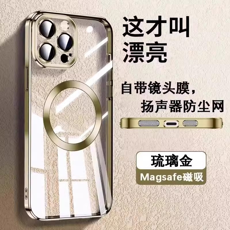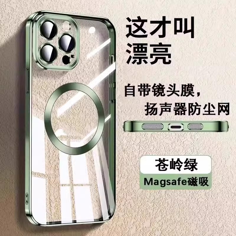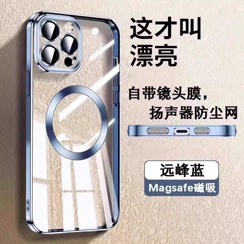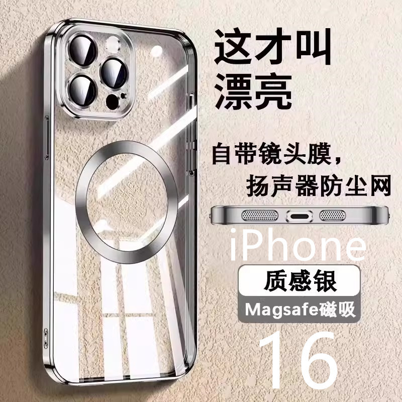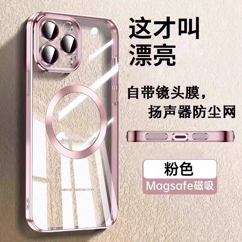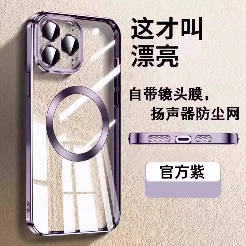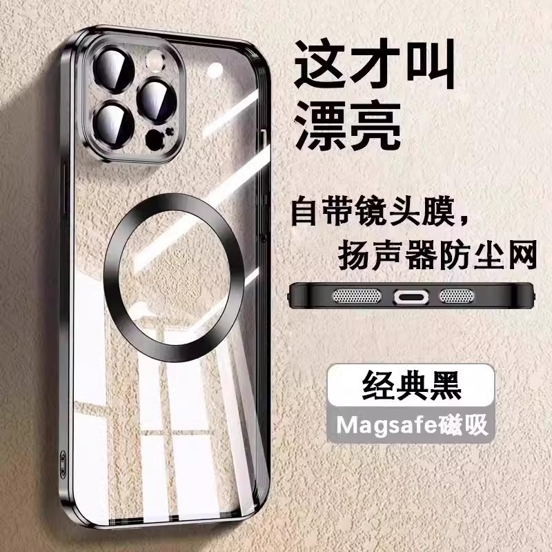 适用iPhone16电镀透明磁吸手机壳苹果15全包自带镜头膜防摔保护套