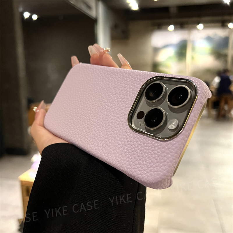 适用iPhone16promax手机壳荔枝纹皮革苹果15纯色简约防摔14保护套