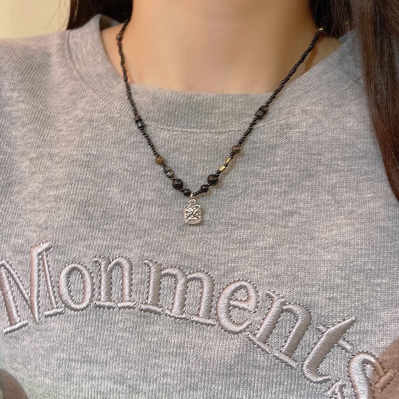 国潮醒狮串珠项链女新中式国风复古锁骨链女高级感小众设计毛衣链