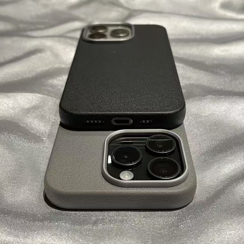 适用iPhone16promax手机壳纯色素皮纹苹果15荔枝纹14简约保护套13