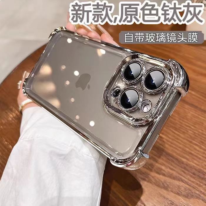 适用iPhone16气囊防摔手机壳电镀太空壳镜头膜苹果15promax保护套