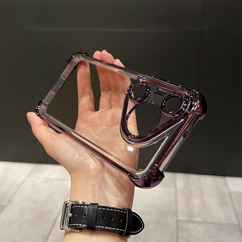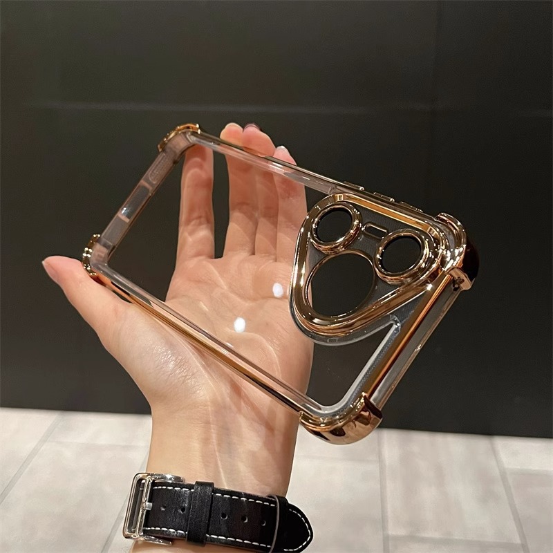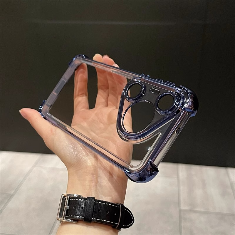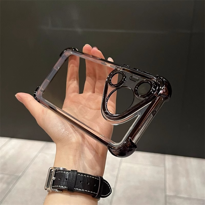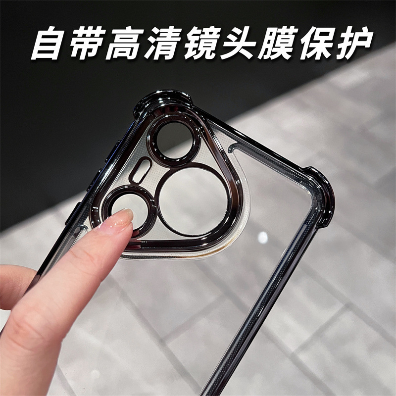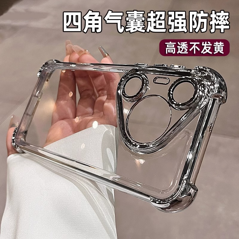 适用华为pura70Pro手机壳 透明四角气囊Mate60全包电镀防摔保护套