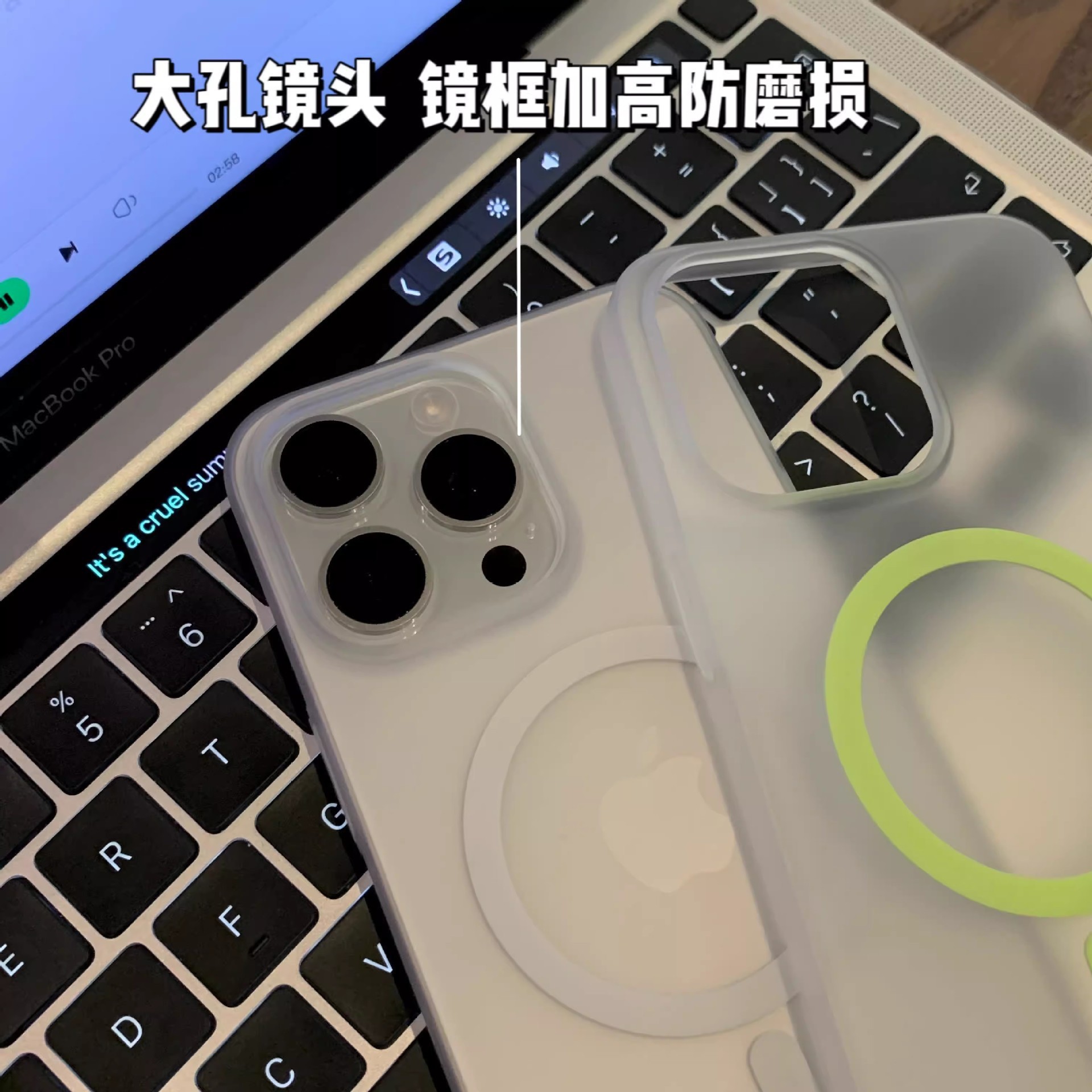 适用苹果16夜光磁吸手机壳冰雾iPhone15pro磨砂肤感荧光14M保护套