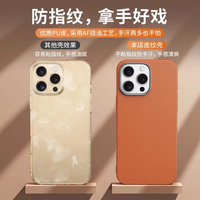 适用iPhone16素皮纹手机壳新款苹果15promax简约纯色防摔保护套14