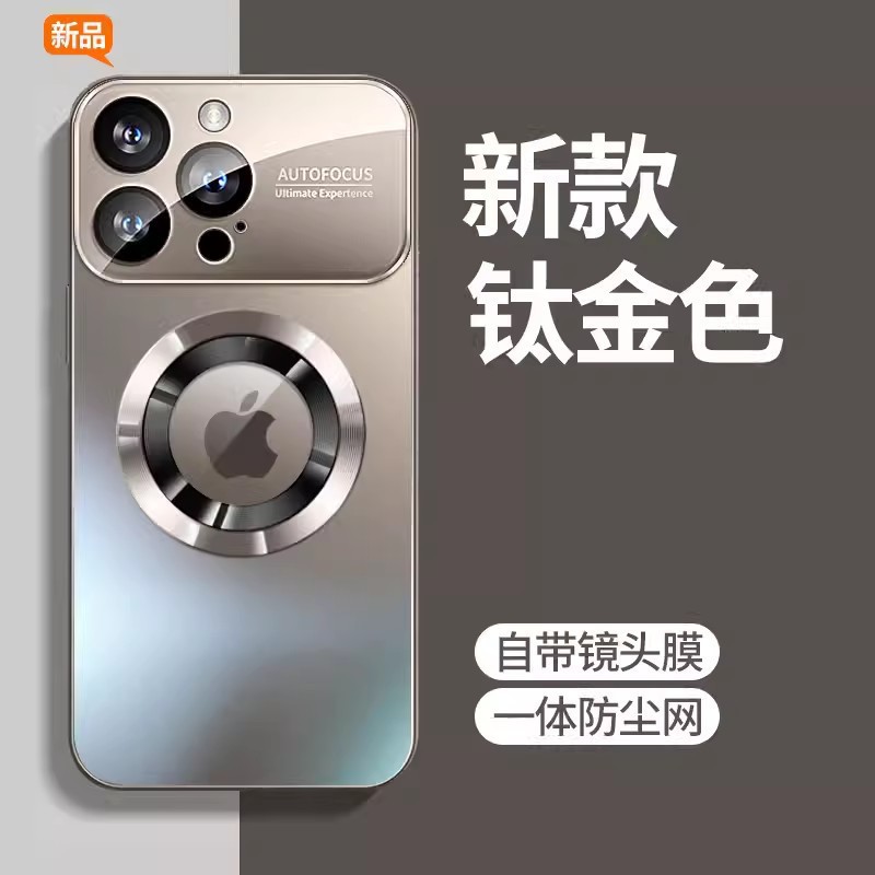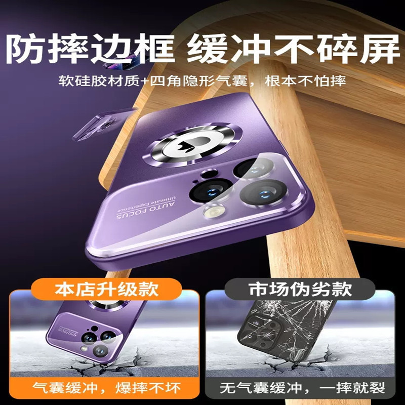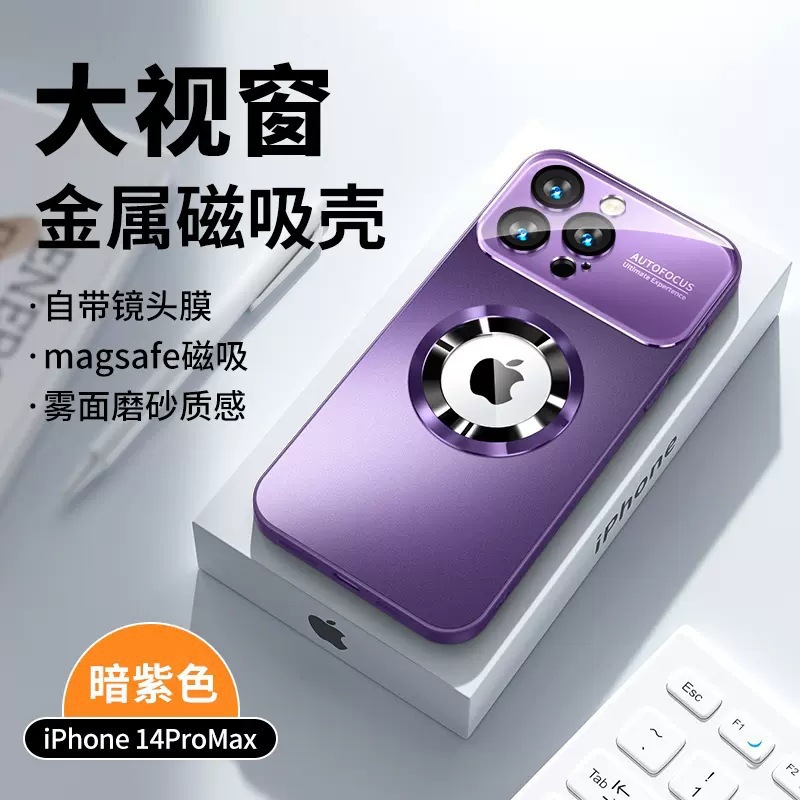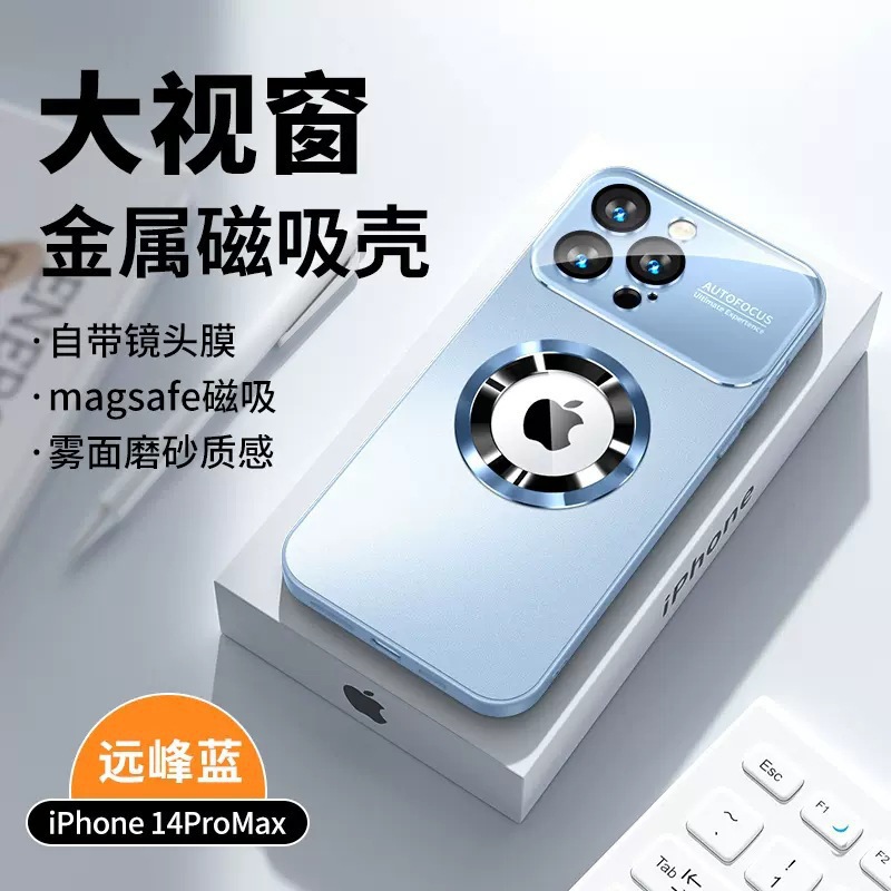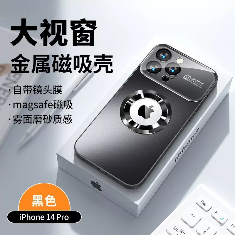 适用iPhone16手机壳磁吸大视窗磨砂玻璃苹果15镜头膜防摔保护套14