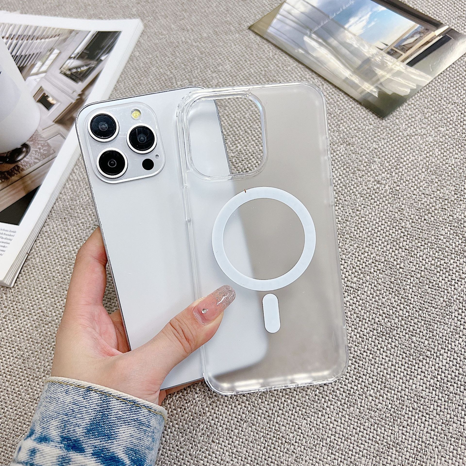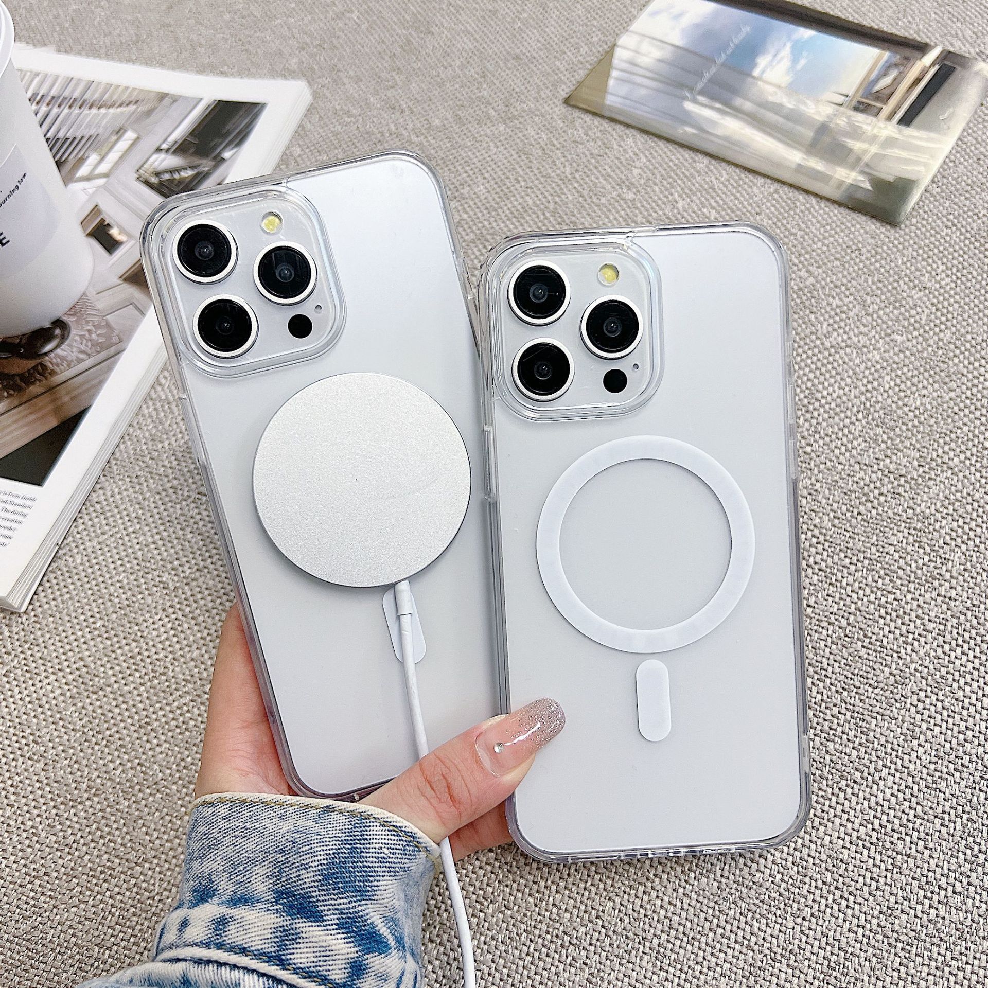 适用iPhone16promax磨砂透明手机壳苹果15磁吸无线充亚克力保护套