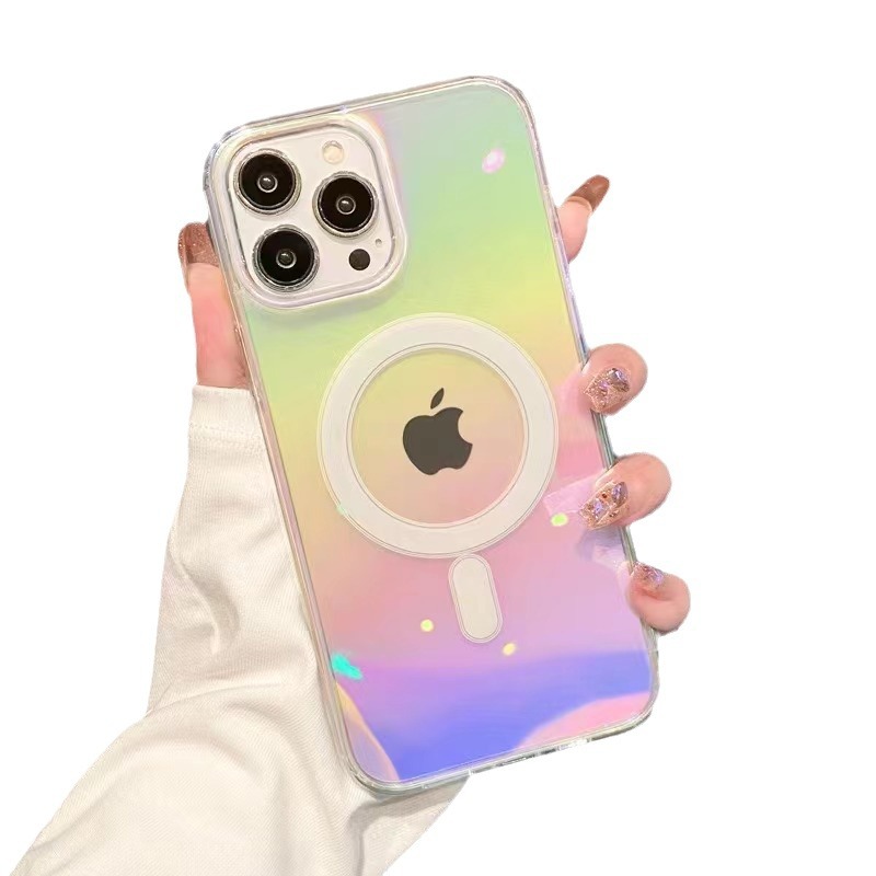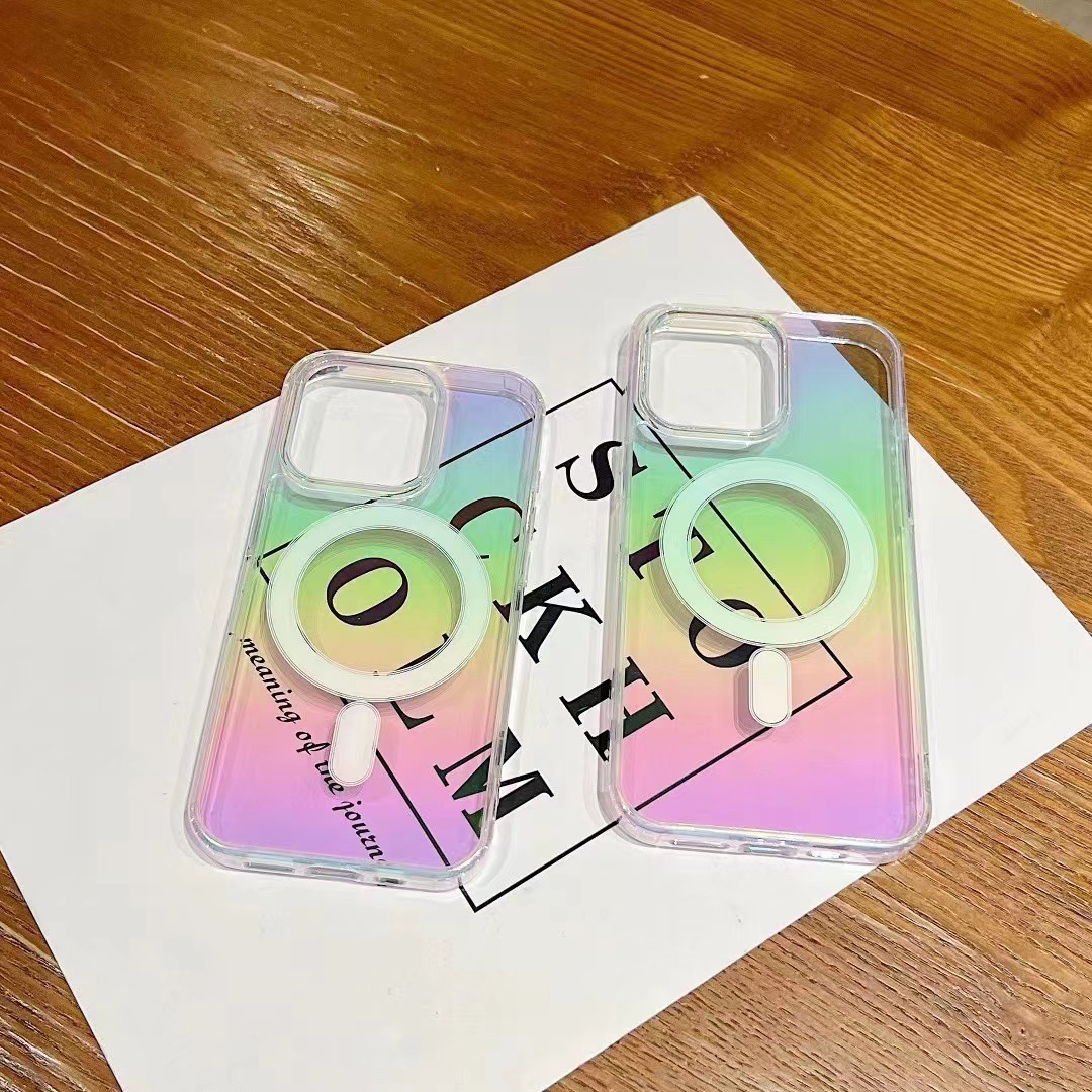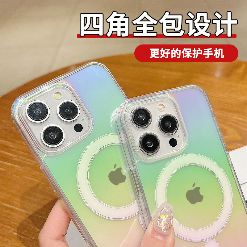 适用苹果16promax磁吸手机壳渐变彩镀iPhone14软边气囊防摔保护套