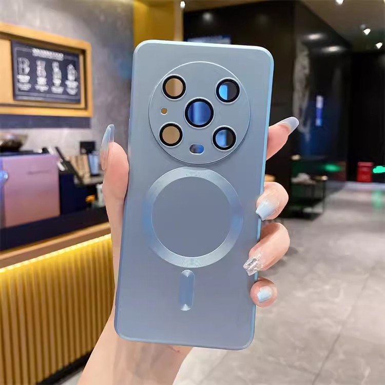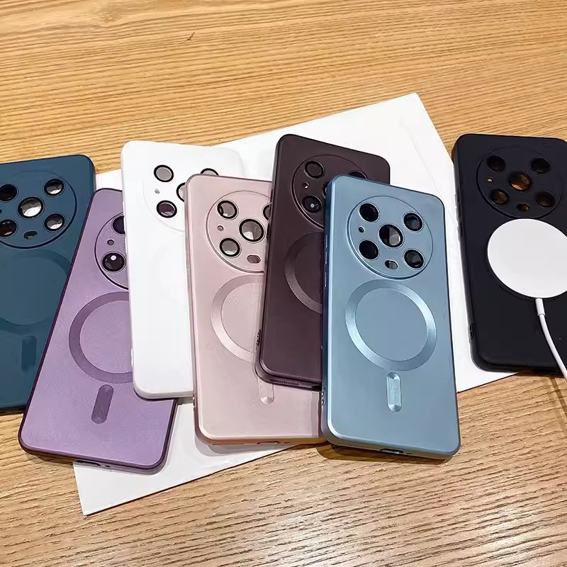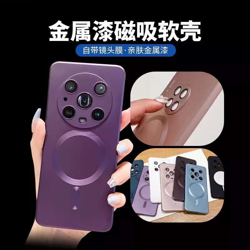 适用华为Pura70手机壳磁吸金属漆mate60Pro+硅胶防摔镜头膜保护套