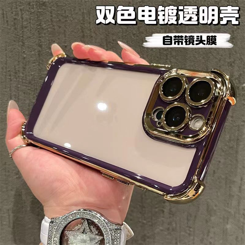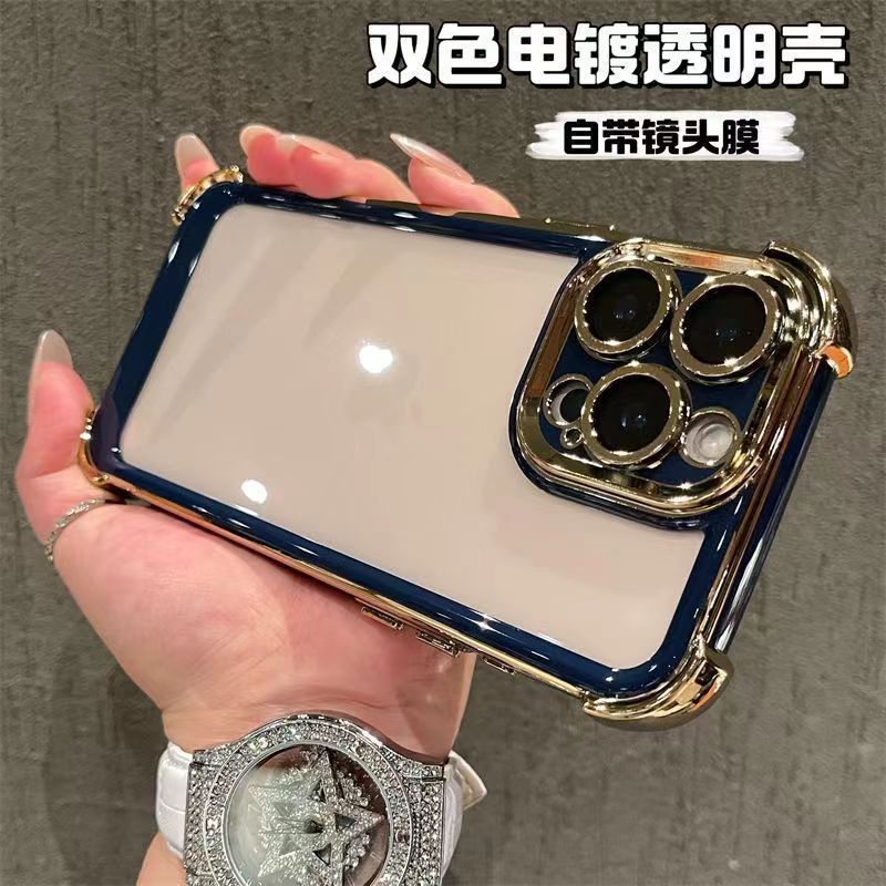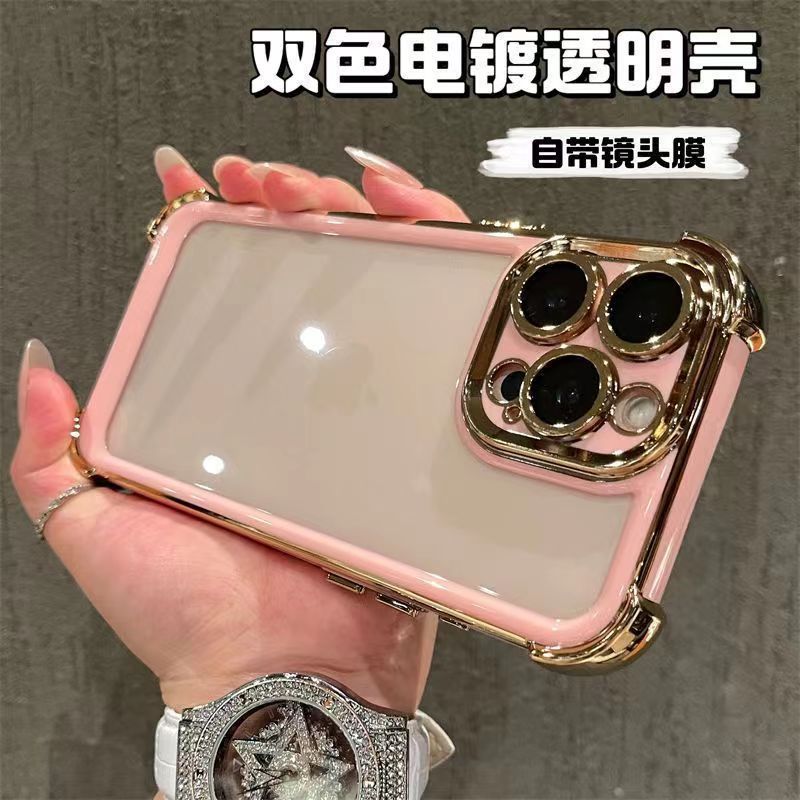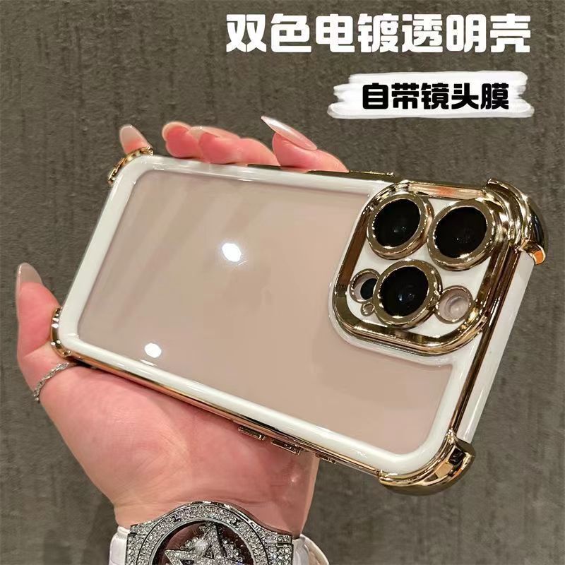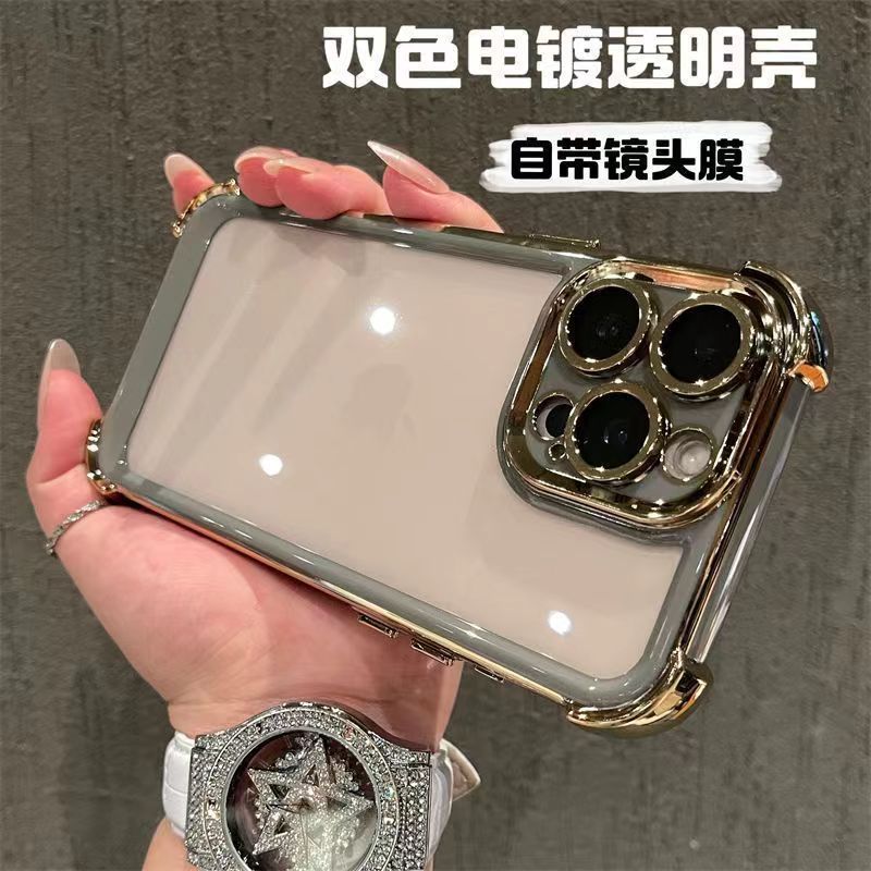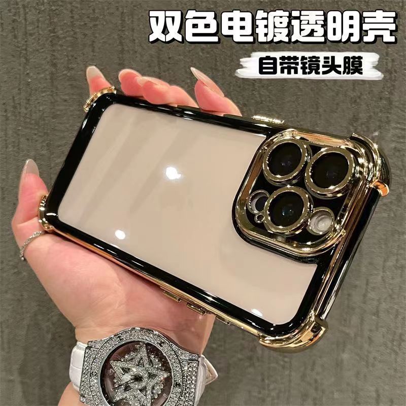 适用iPhone16promax手机壳双色电镀太空壳苹果15四角防摔14保护套