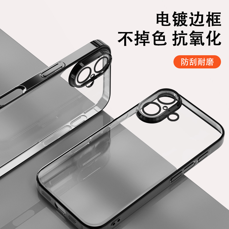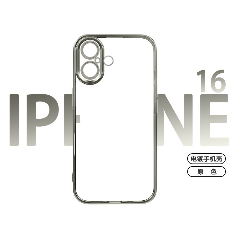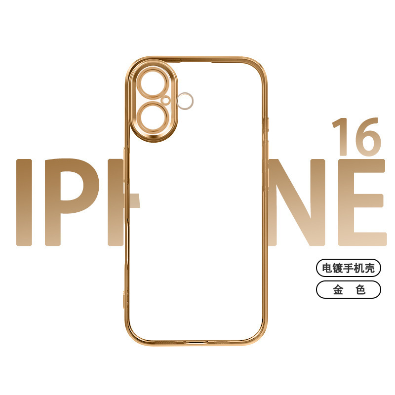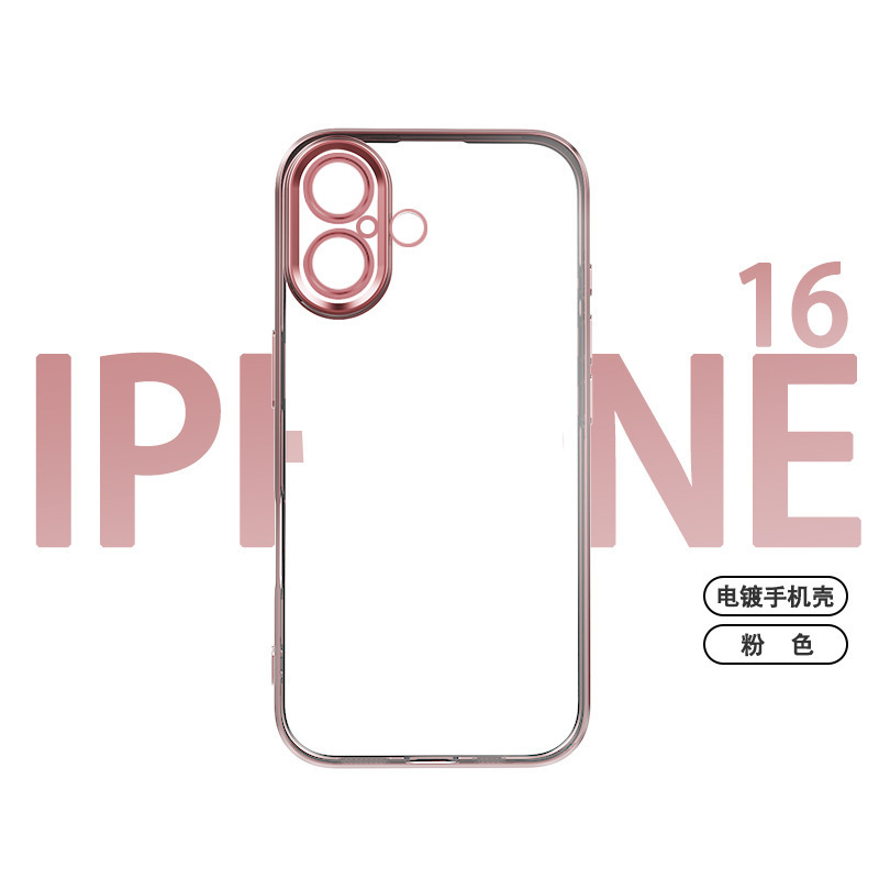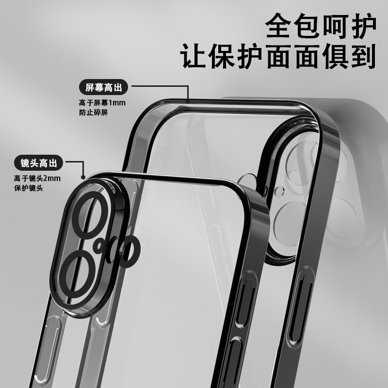 适用iphone16promax手机壳电镀自带镜头膜15透明苹果14防摔保护套
