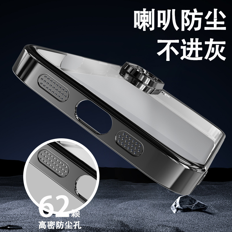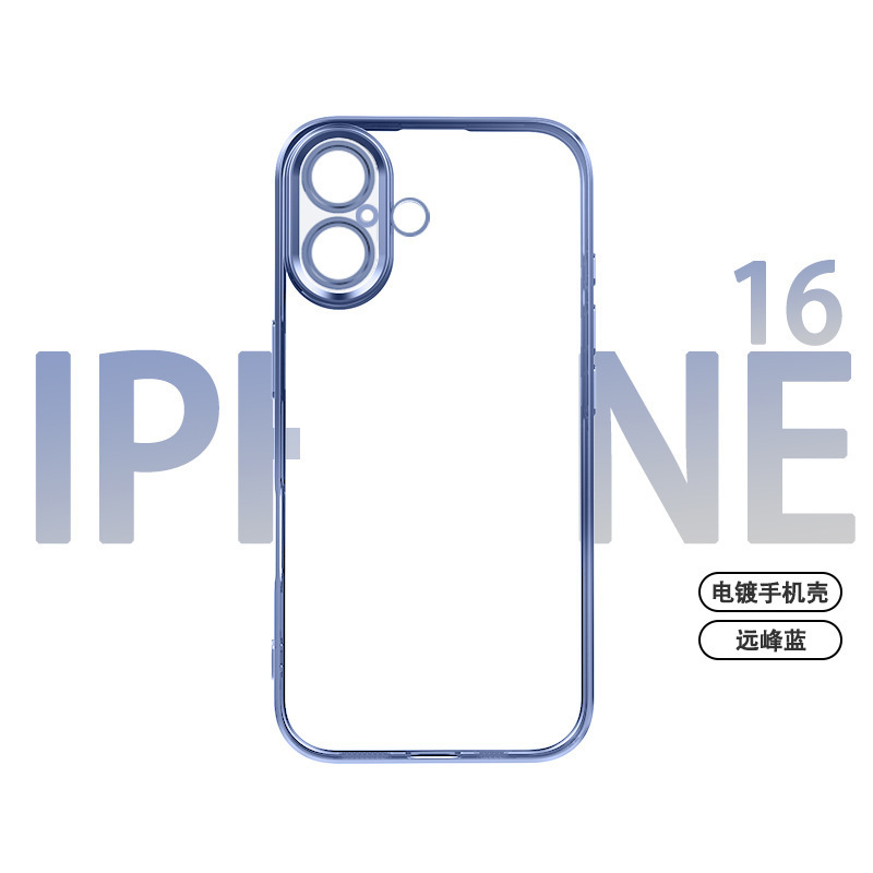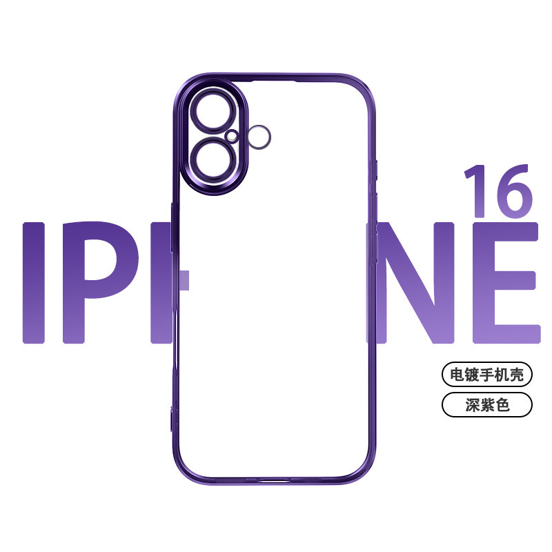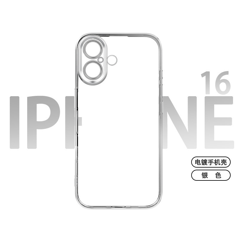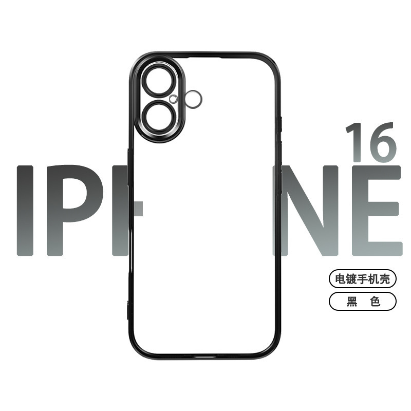 适用iphone16promax手机壳电镀自带镜头膜15透明苹果14防摔保护套