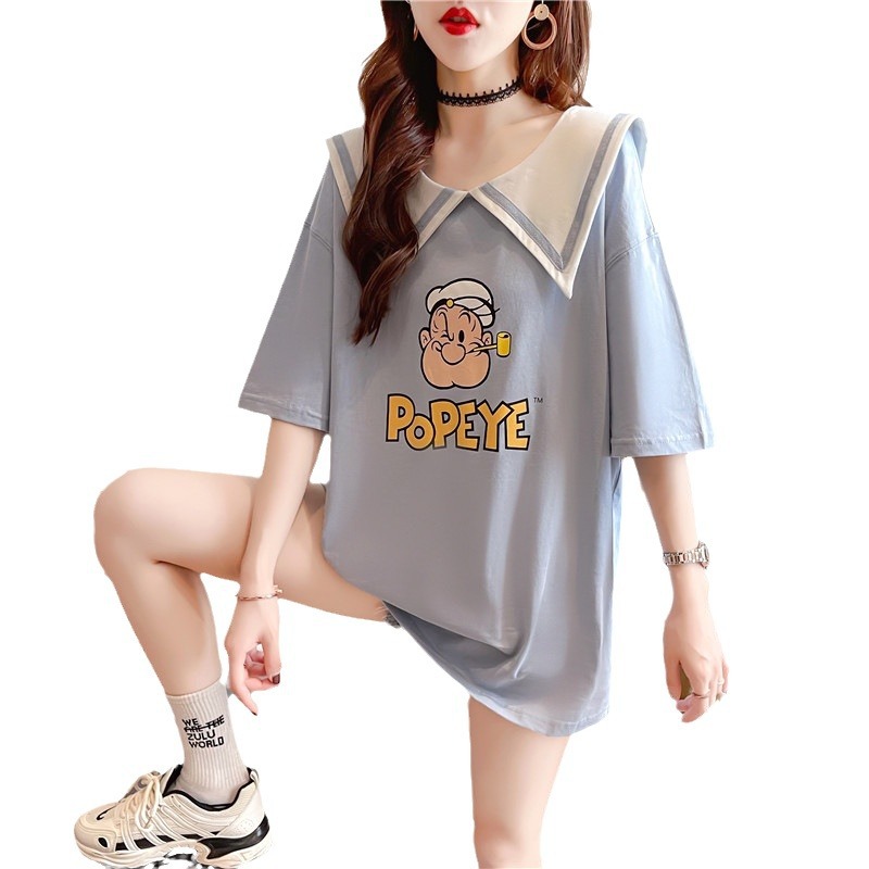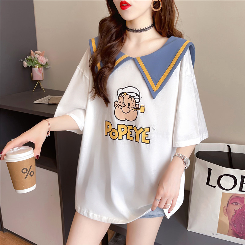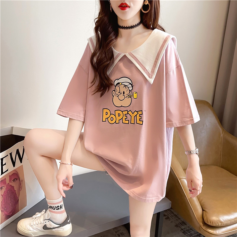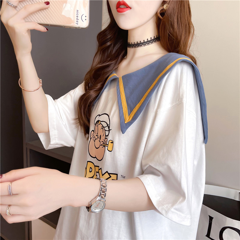 棉质欧货宽松娃娃海军风短袖t恤女2025新款小众设计感洋气上衣潮