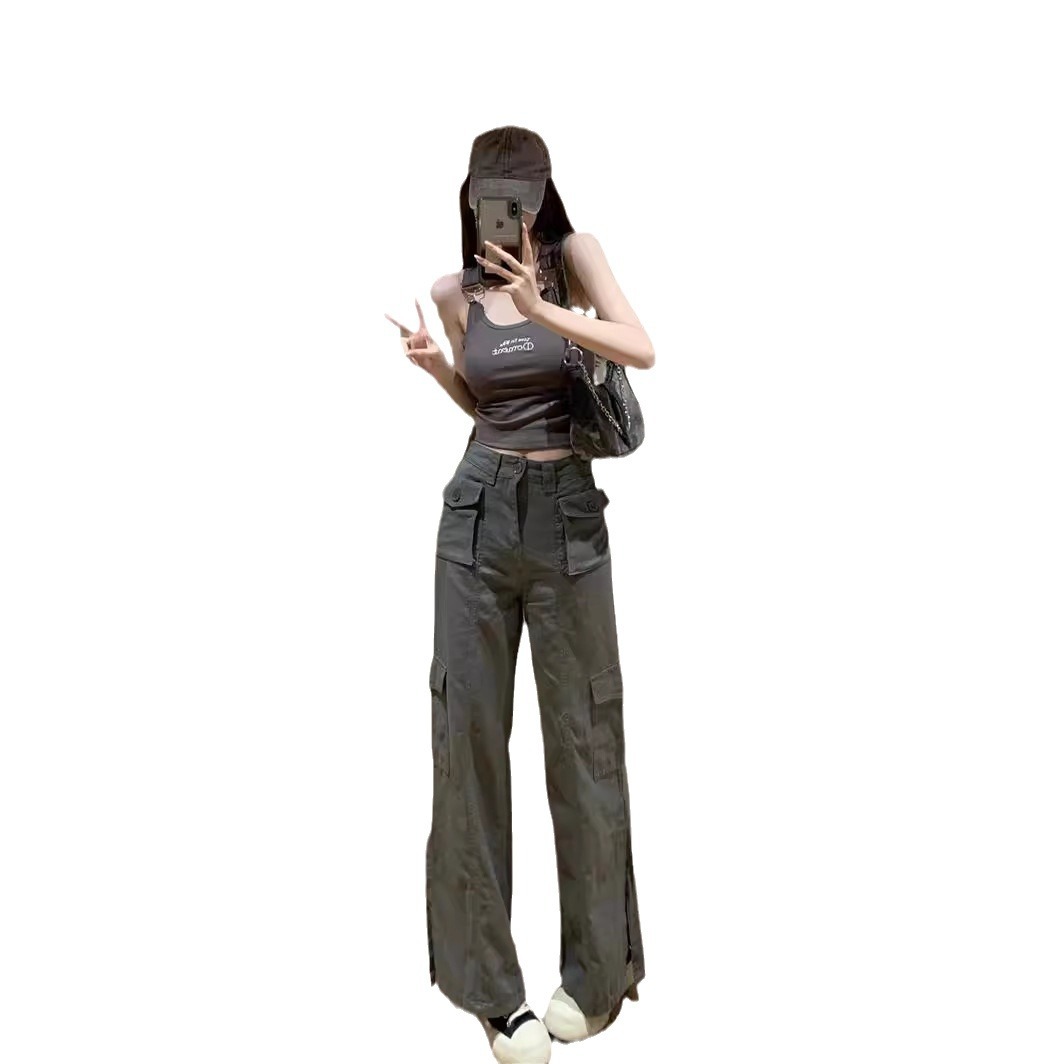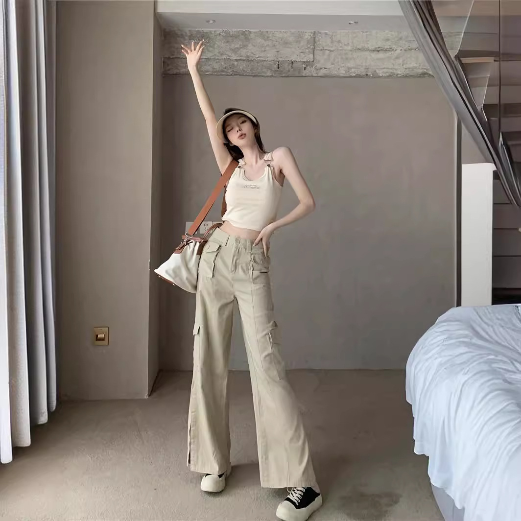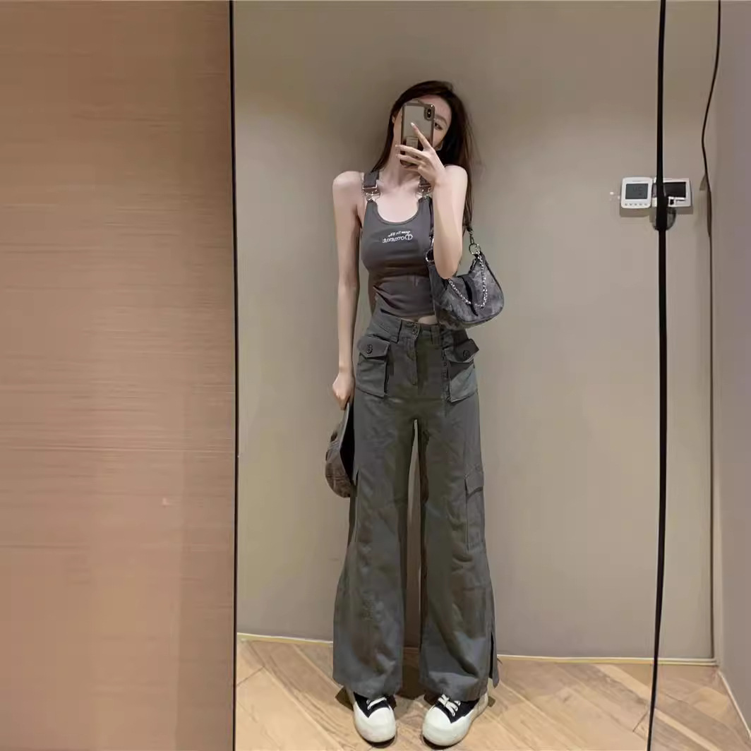美式纯欲风高腰罗纹字母刺绣吊带背心女春季辣妹外穿短款无袖上衣