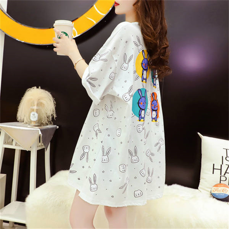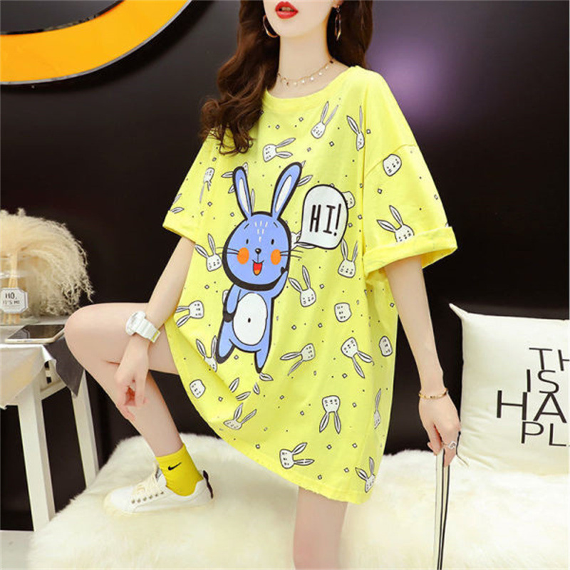 兔子卡通可爱兔年中长款短袖t恤女失踪上衣洋气减龄爆款韩范