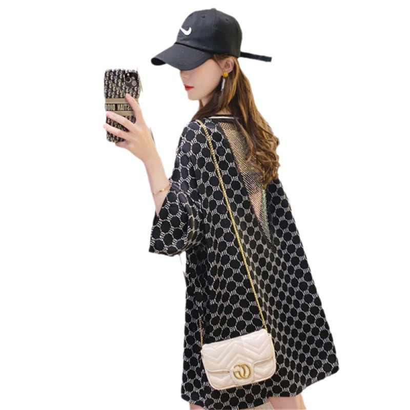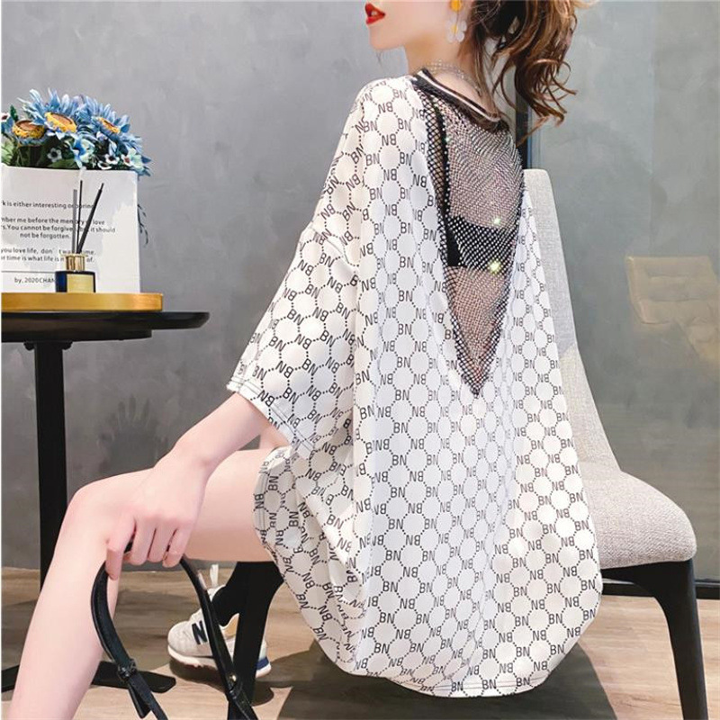 重工钉珠小众设计感后背镂空中长款t恤女欧货欧洲站小心机