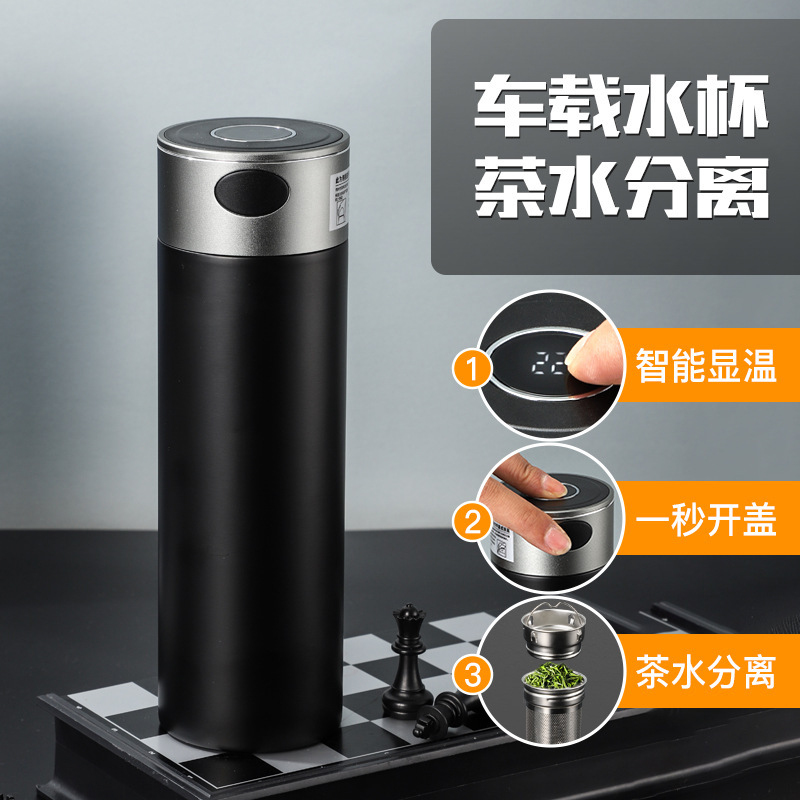 一键开盖保温杯大容量316不锈钢茶水分离泡茶杯智能