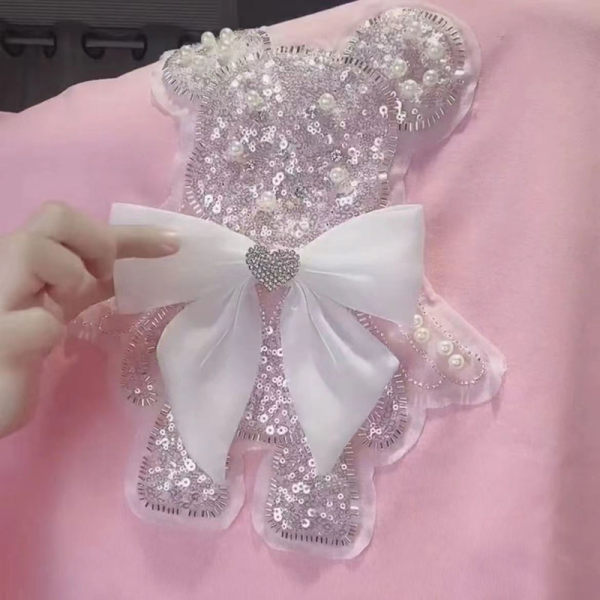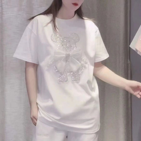 小熊短袖t恤女大码女装设计感小众粉色夏季新款宽松百搭上衣