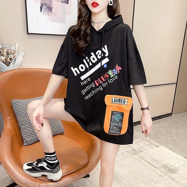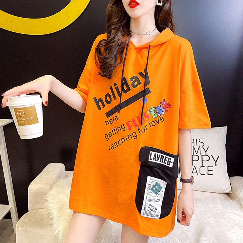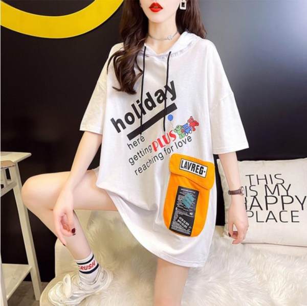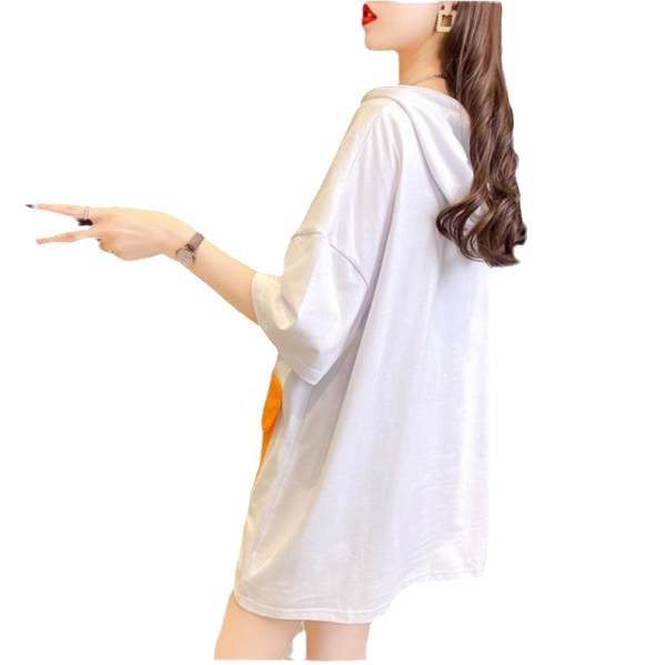 棉短袖t恤女宽松ins潮年夏季新款学生洋气显瘦休闲连帽衫