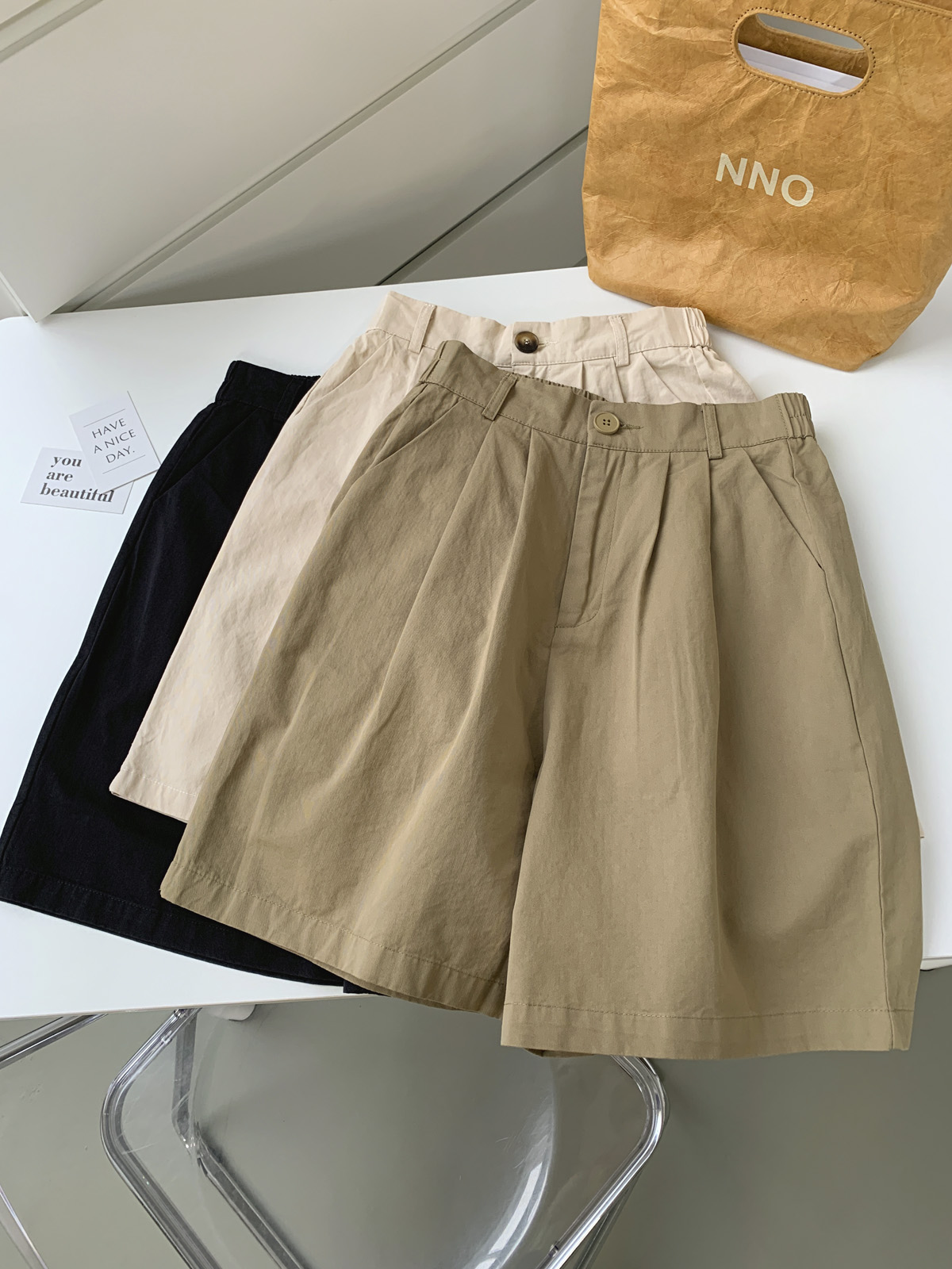 休闲复古全棉工装短裤女半松紧高腰A字版阔腿裤夏季外穿显瘦裤子