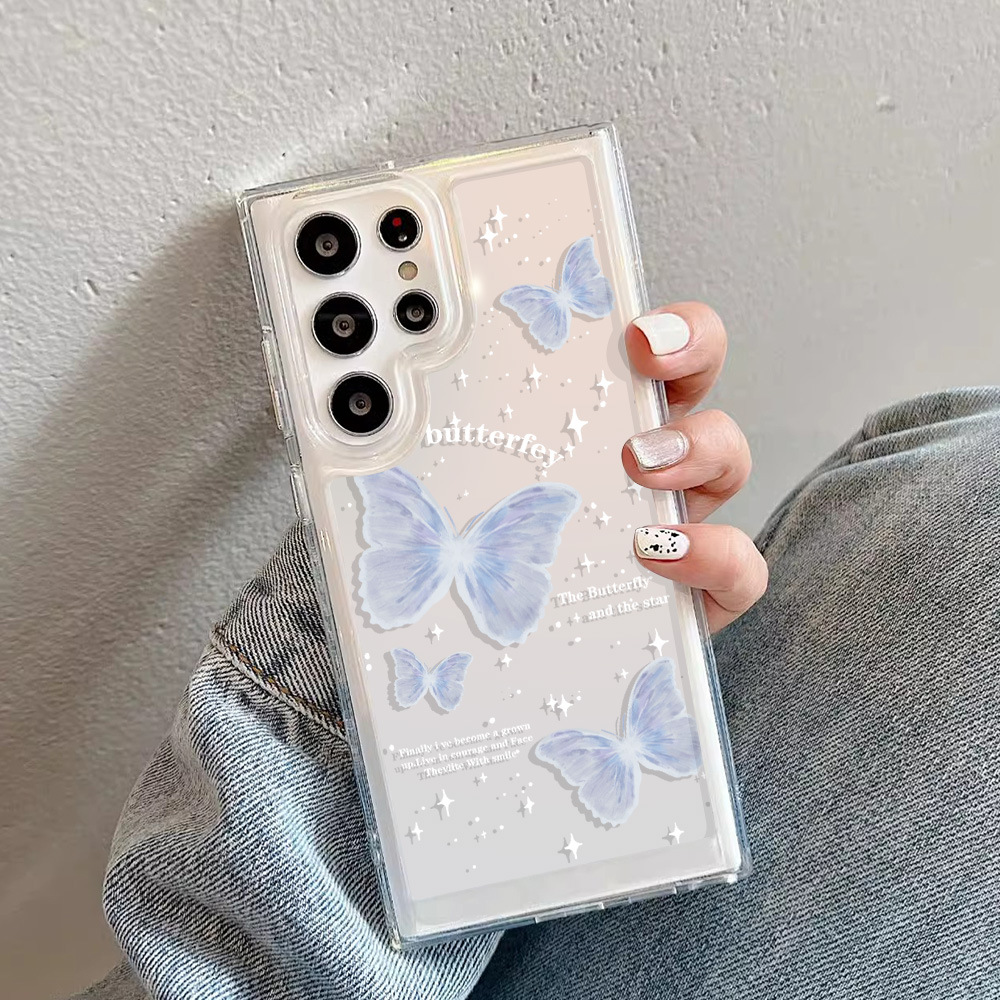 梦幻蓝色蝴蝶S24Ultra手机壳S21FE新款S24Plusins风S24软透明壳