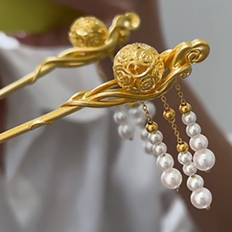 发簪新中式清冷步摇流苏珍珠新款高级感复古挽发盘发旗袍汉服簪子